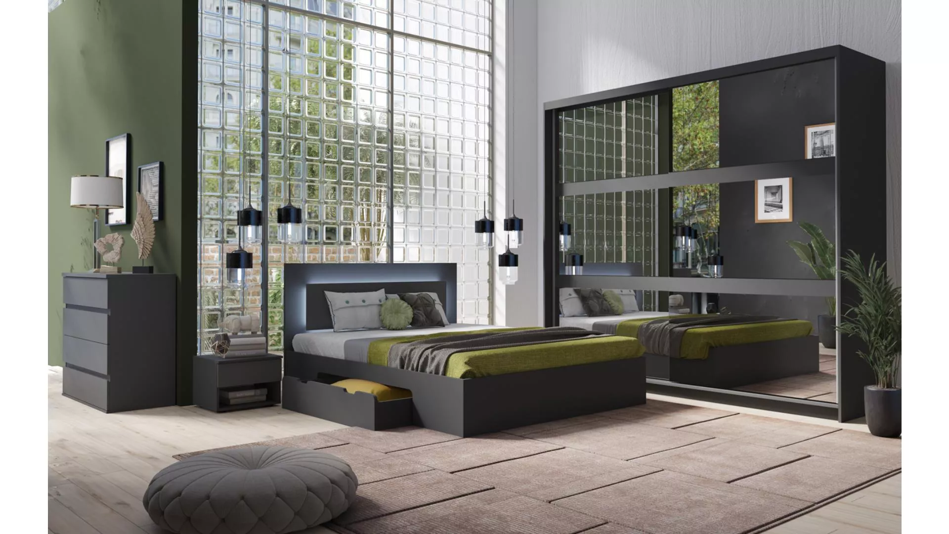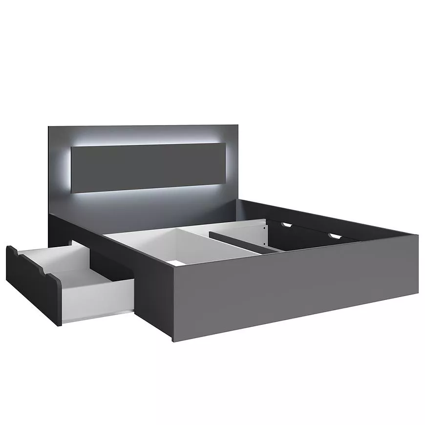 Manželská postel se šuplíky 160x200 DUITAMA - grafitová + LED osvětlení ZDARMA