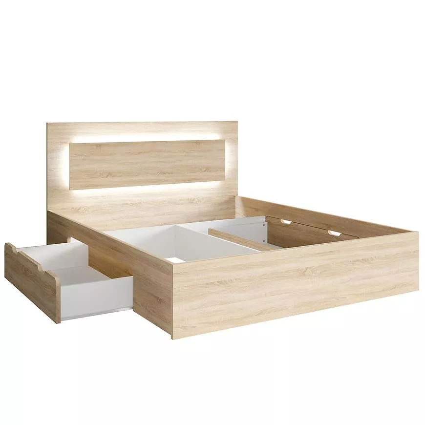 Manželská postel se šuplíky 180x200 DUITAMA - dub sonoma + LED osvětlení ZDARMA