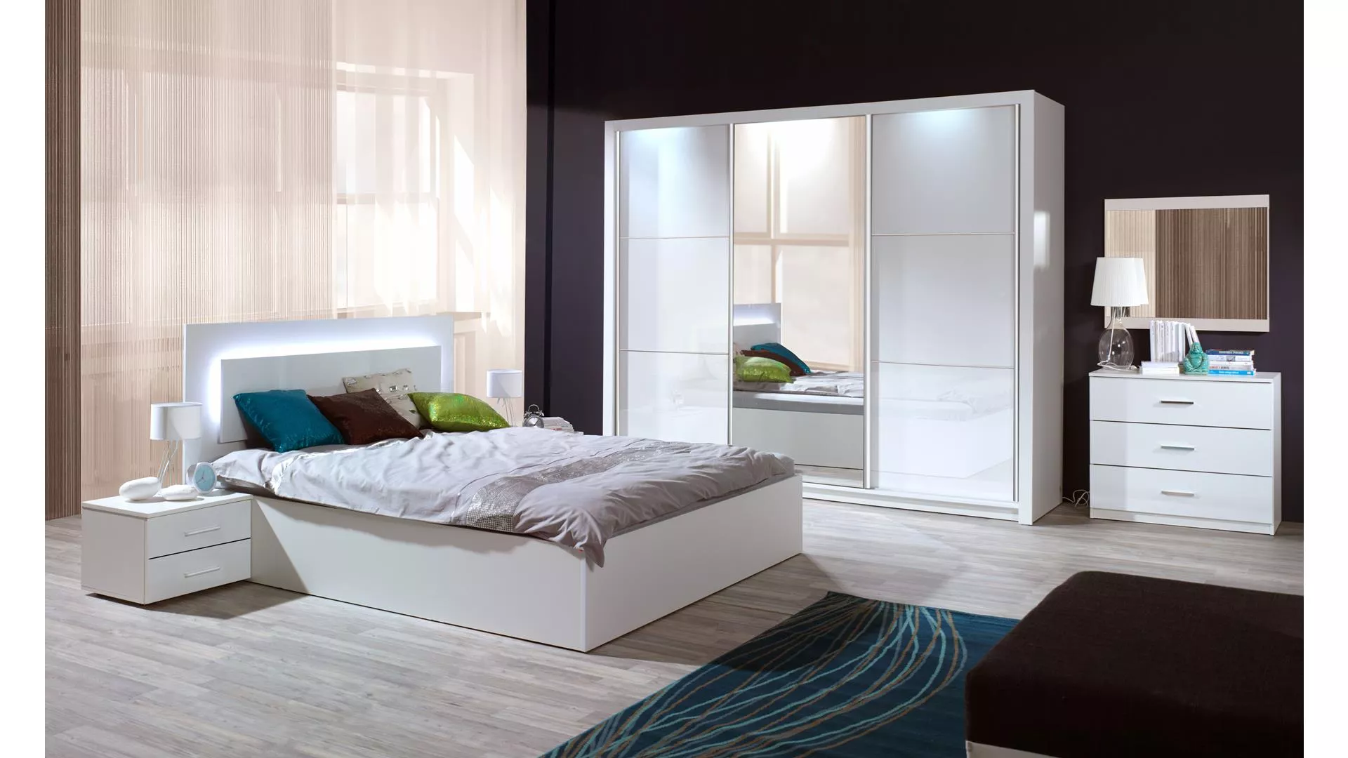 Manželská postel 160x200 CAJICA - alpská bílá / lesklá bílá + LED osvětlení ZDARMA
