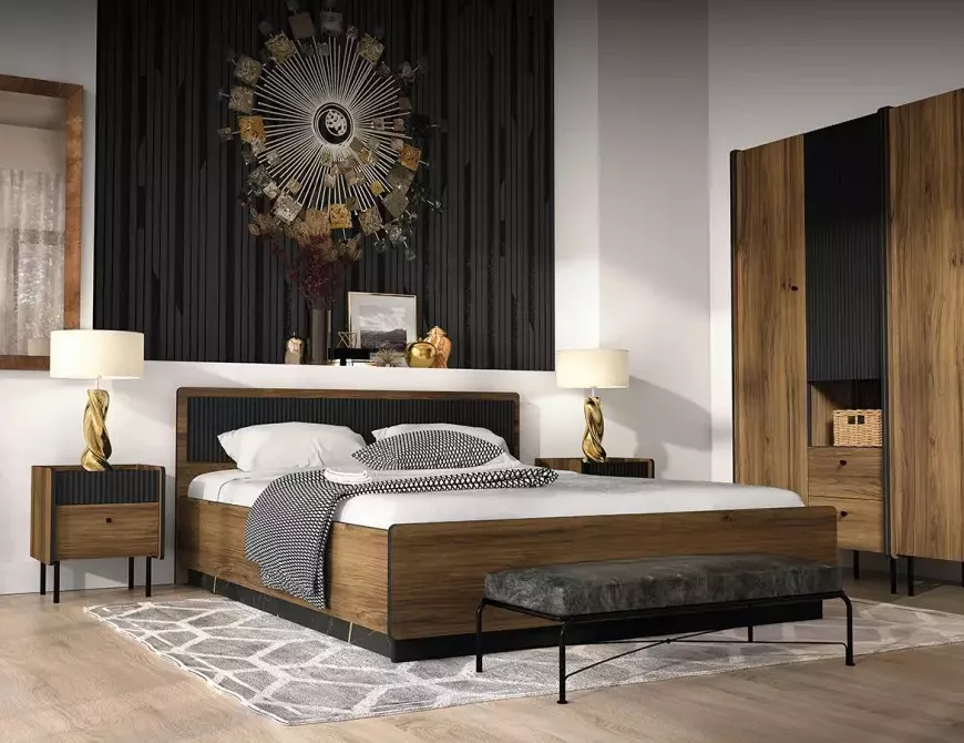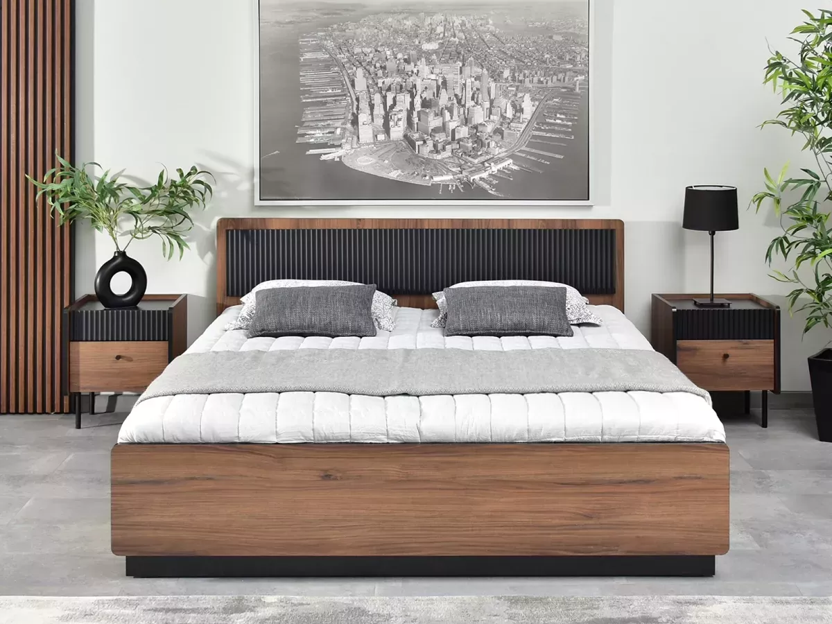 Manželská postel 160x200 ASHEBORO - ořech / san sebastian / černá