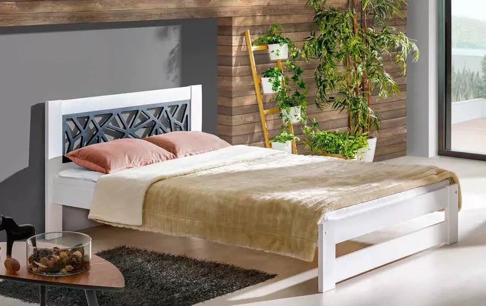 Masivní manželská postel 140x200 HENDERSON - bílá borovice
