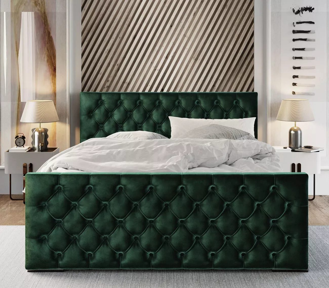 Elegantní čalouněná postel 140x200 ROSEMARIE 1 s úložným prostorem - zelená