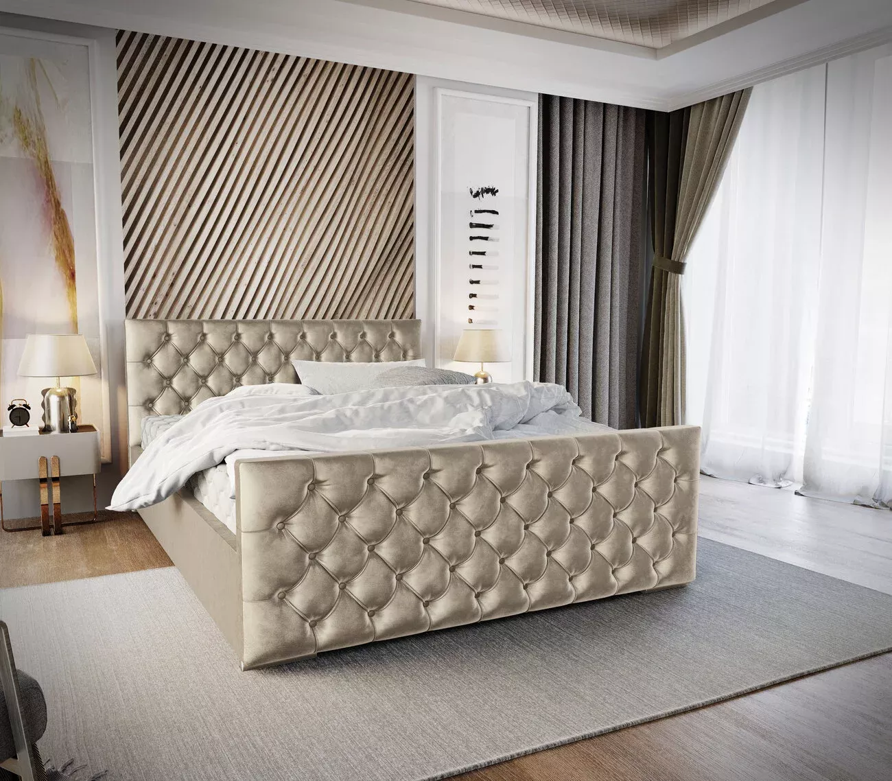 Elegantní čalouněná postel 160x200 ROSEMARIE 1 s úložným prostorem - béžová