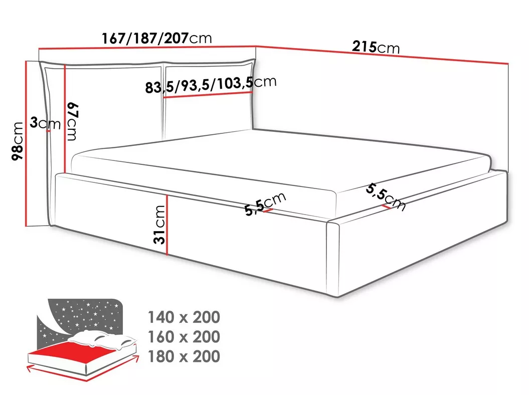 Obklopte se pohodlím čalouněné postele JOESON, která okouzlí v moderním i klasickém interiéru. Velké měkké čelo zpříjemní večery při čtení i sledování televize. Úložný prostor uschová ložní prádlo, polštáře i sezónní oblečení. Zaoblené boky navíc chrání před nepříjemným nárazem a dodávají posteli jemný vzhled.