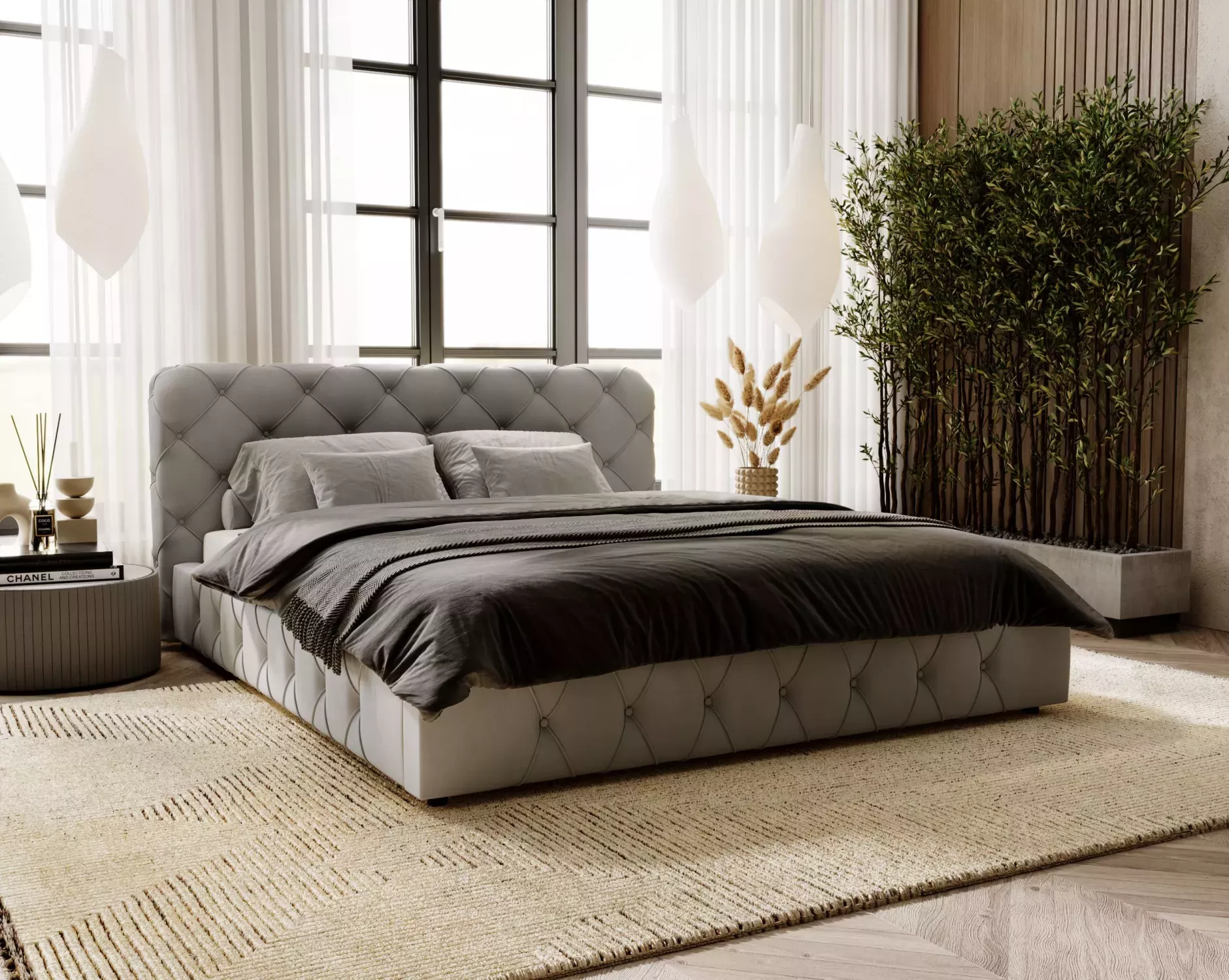 Elegantní čalouněná postel 200x200 MARLENE 2 s úložným prostorem - světle šedá