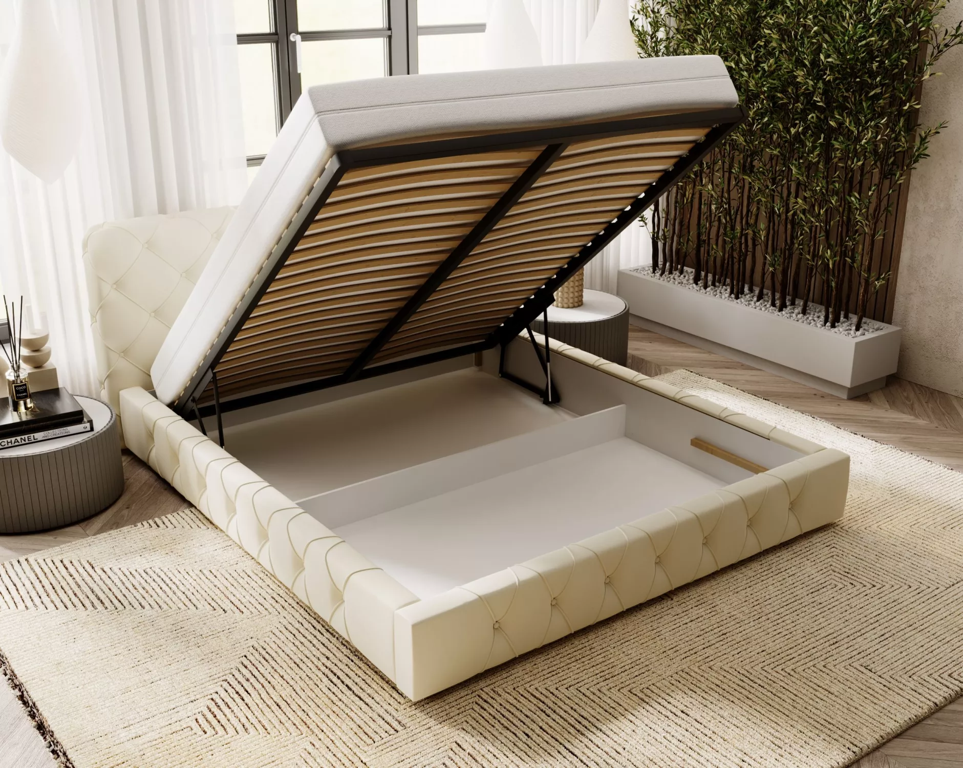 Elegantní čalouněná postel 160x200 MARLENE 2 s úložným prostorem vám zajistí pohodlný spánek a zkrášlí vaši ložnici. Čalouněné čelo zamezí poškrábání a zašpinění zdi.