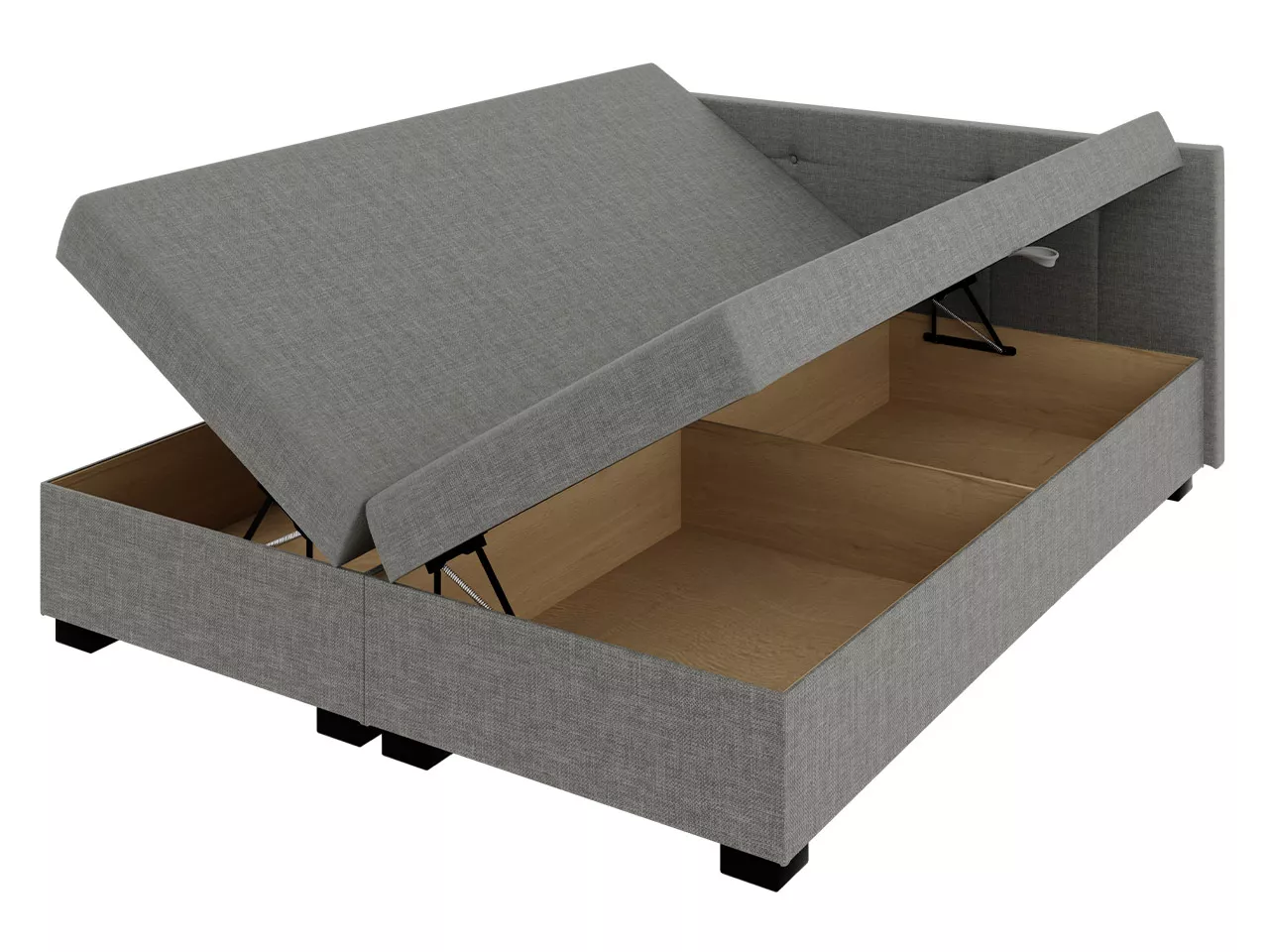Čalouněná manželská postel WERDY je vybavená kvalitní pěnovou matrací a topperem, které vašemu tělu poskytnou dostatečnou oporu a zajistí pohodlí a relaxaci během spánku. Ozdobným prvkem postele je prošívané čelo s vrstvou čalouněné pěny. Samozřejmostí je dvoukomorový úložný prostor na lůžkoviny.