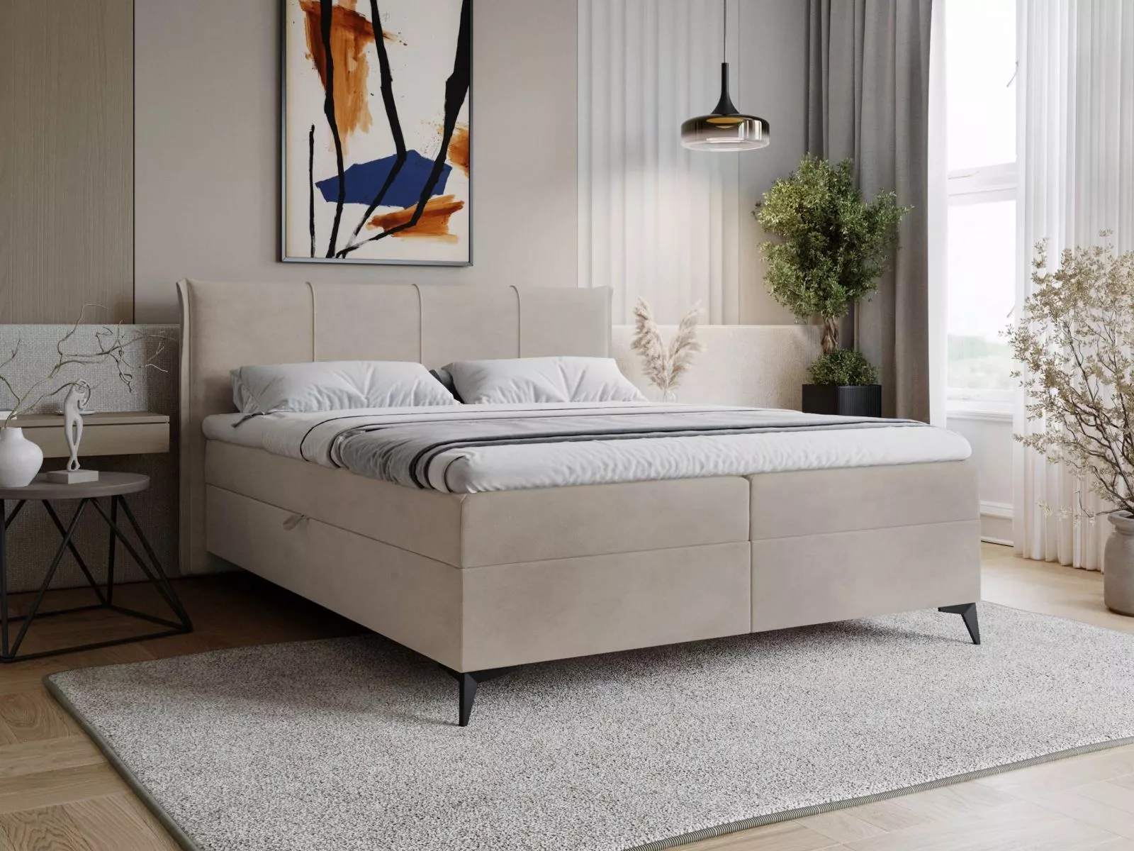 Čalouněná kontinentální postel 160x200 PASCO - béžovohnědá + topper ZDARMA