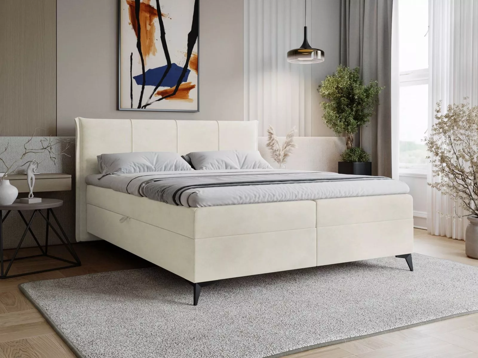 Čalouněná kontinentální postel 180x200 PASCO - špinavá bílá + topper ZDARMA