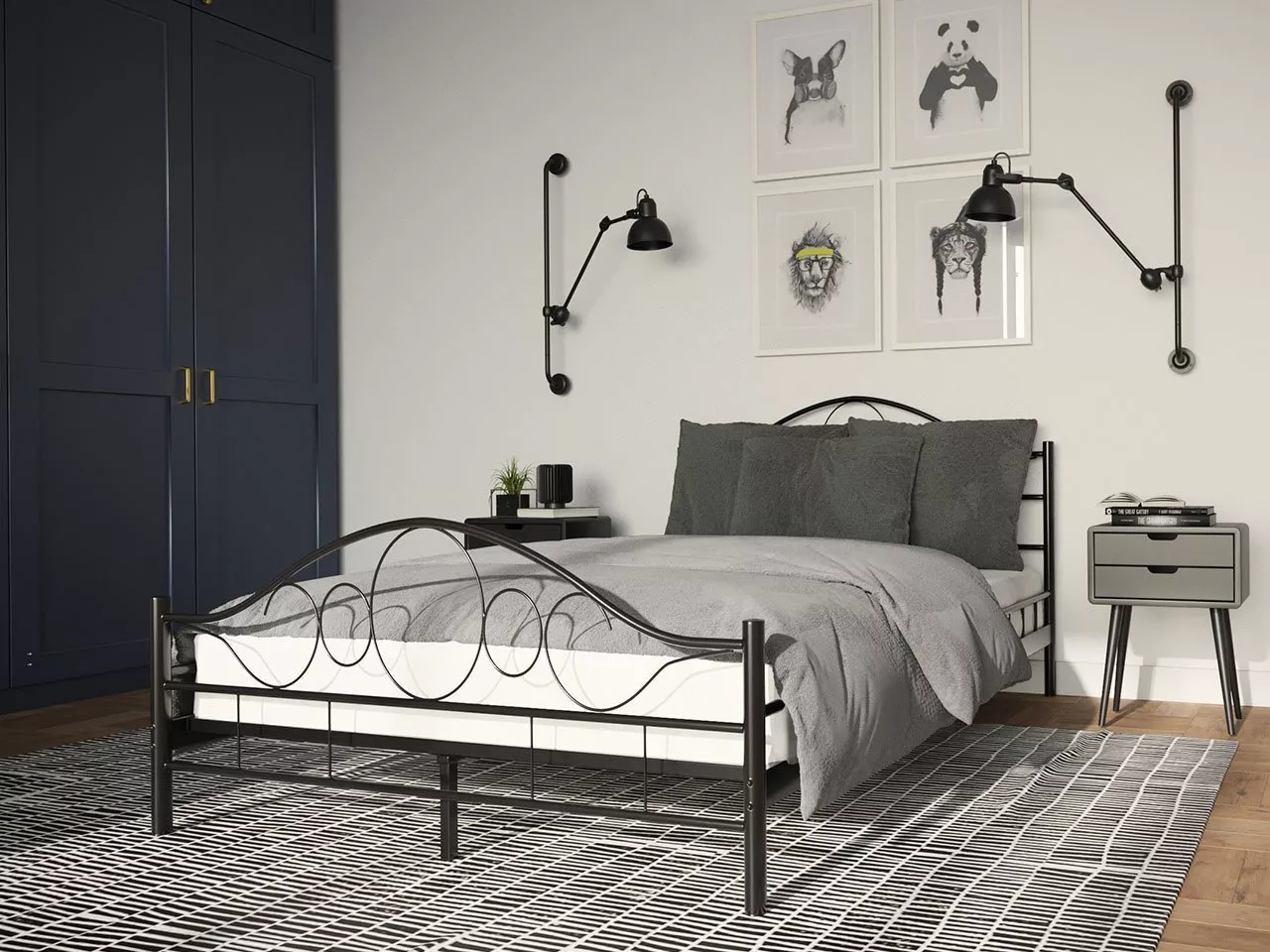 VÝPRODEJ - Kovová manželská postel 140x200 TEJANO - černá