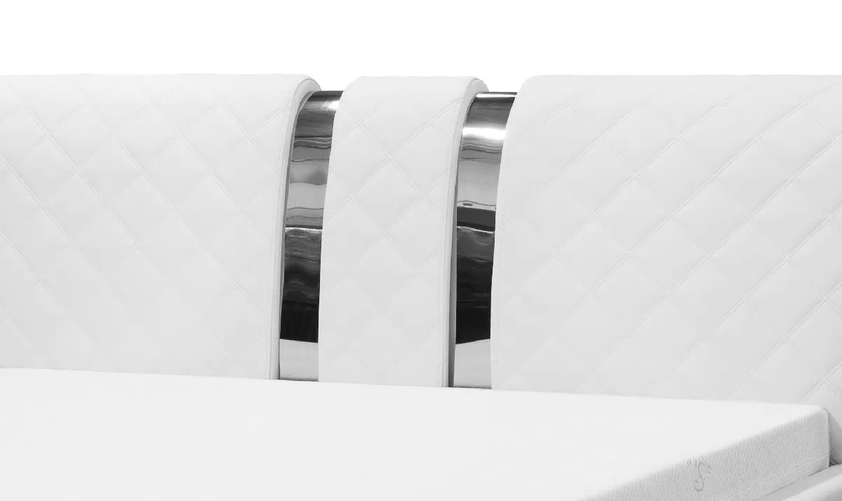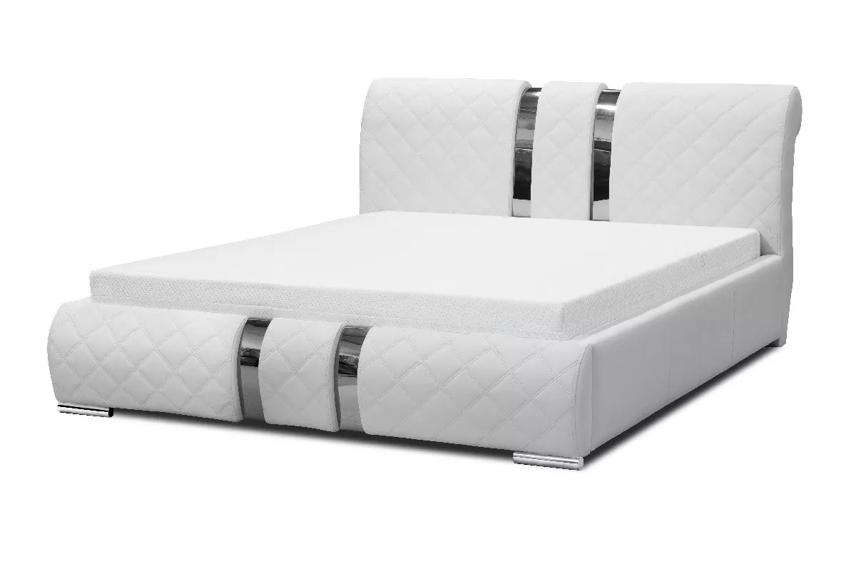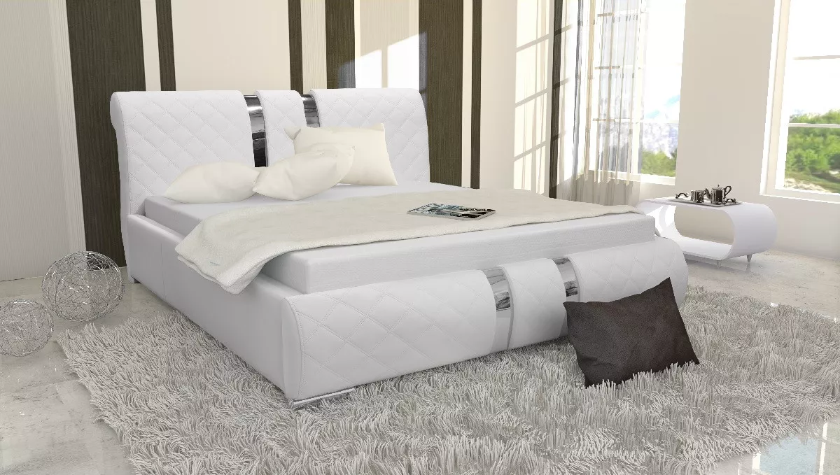Luxusní čalouněná postel LUKA s vysokým čelem a úložným prostorem bílá eko kůže 200x200