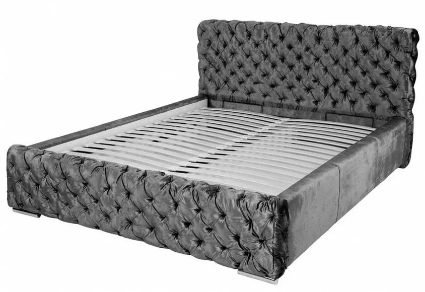 Korpus se v záhlaví pevně slívá s dominantním čelem. Totéž platí i pro spojení s menším čelem v nohou. Tam je navíc podepřený dvojicí ozdobných nožiček ve stříbrném lesku. Postel Farida nabízí také vestavný rošť s kvalitními panty, pod kterým se nachází praktický úložný prostor. Ten je navíc půlený, takže do něj lze uložit jak věci na spaní, tak třeba sezónní oblečení nebo boty.