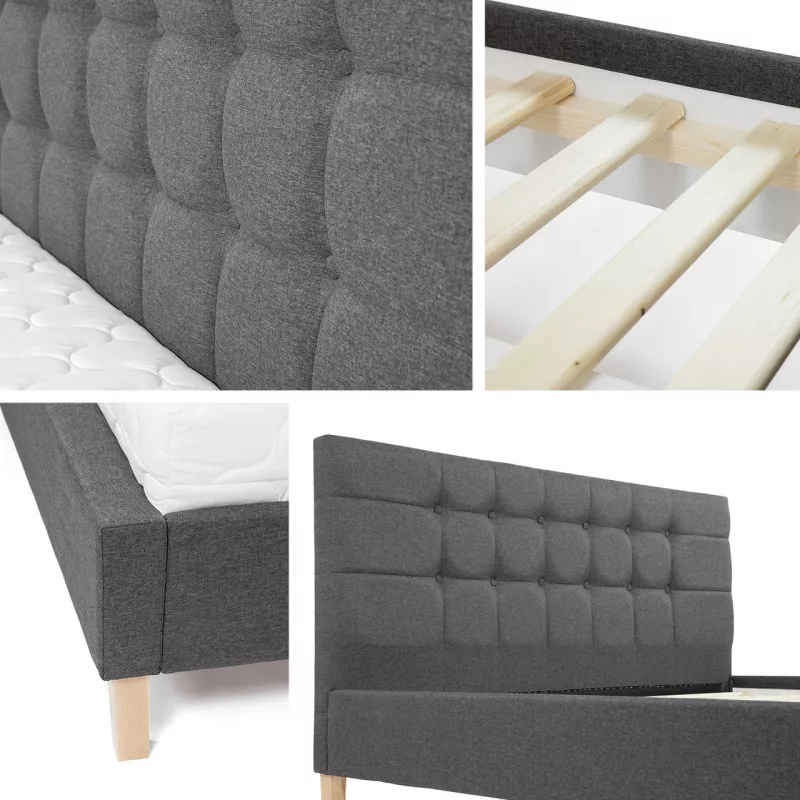 Manželská postel NEWARK se vyznačuje stylovým designem s vysokým a měkkým čelem, který skvěle podtrhne každý moderní interiér. Postel byla vyrobena z pevných a odolných materiálů, což zaručuje dlouhodobou spokojenost. Nohy postele jsou vyrobené z bukového dřeva o výšce 15 cm.