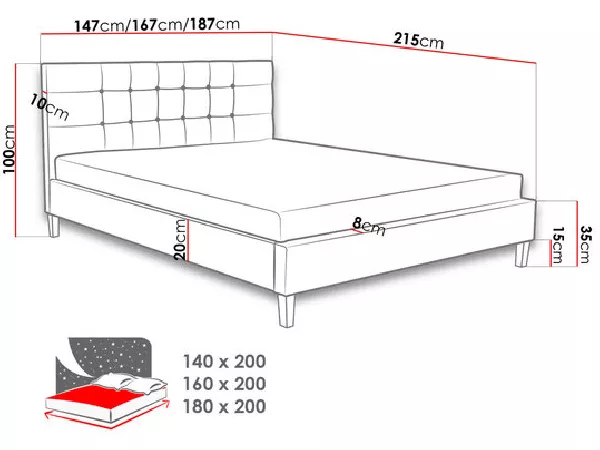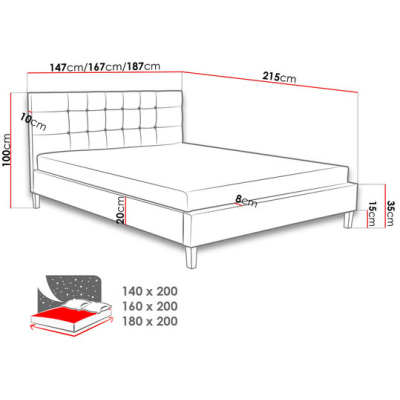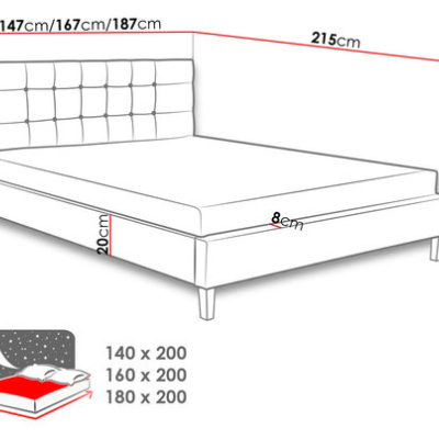 Manželská postel NEWARK se vyznačuje stylovým designem s vysokým a měkkým čelem, který skvěle podtrhne každý moderní interiér. Postel byla vyrobena z pevných a odolných materiálů, což zaručuje dlouhodobou spokojenost. Nohy postele jsou vyrobené z bukového dřeva o výšce 15 cm.