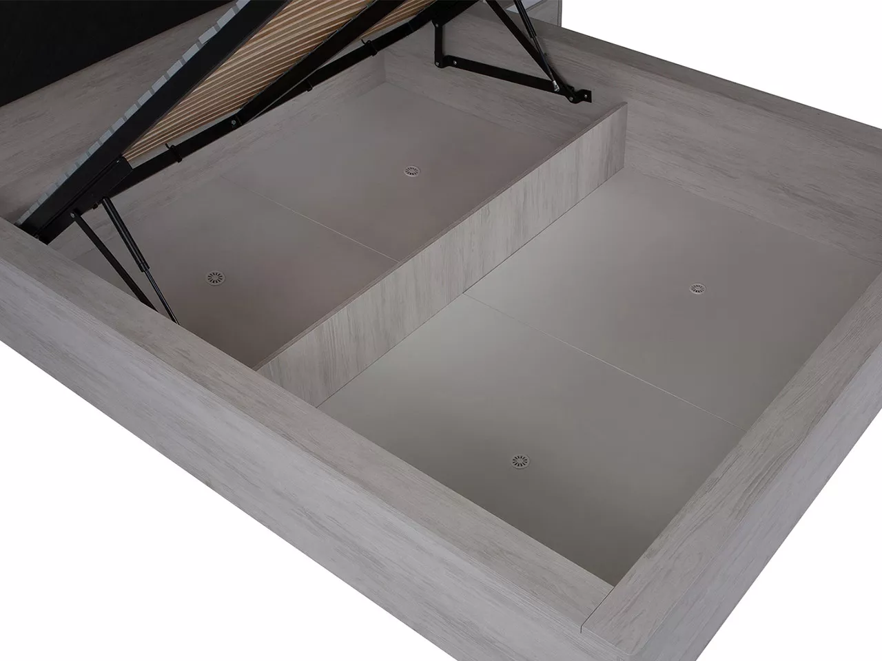 - součástí postele je kovový rošt (rám) s plynovou pružinou 1000N pro snadné otevírání