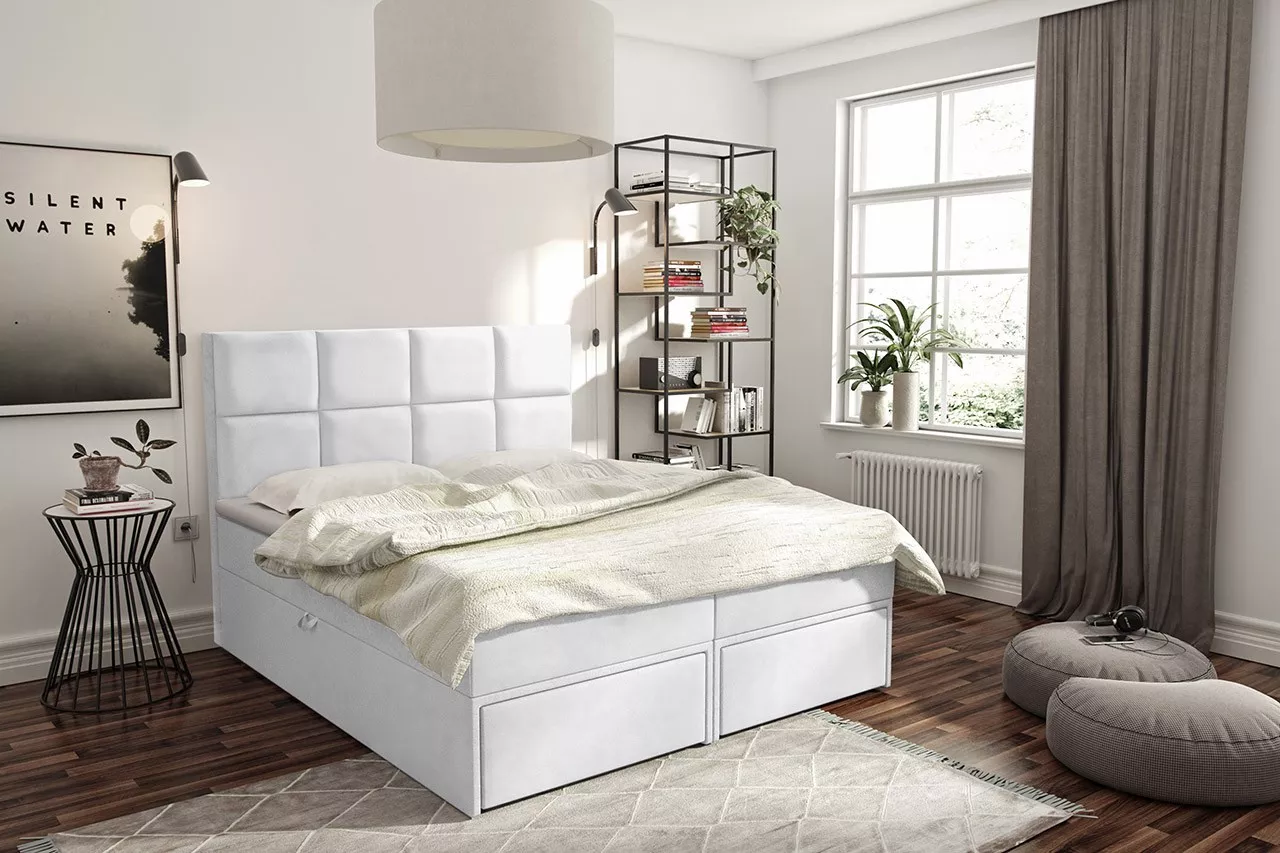 Manželská boxspringová postel 180x200 LUGAU - bílá ekokůže