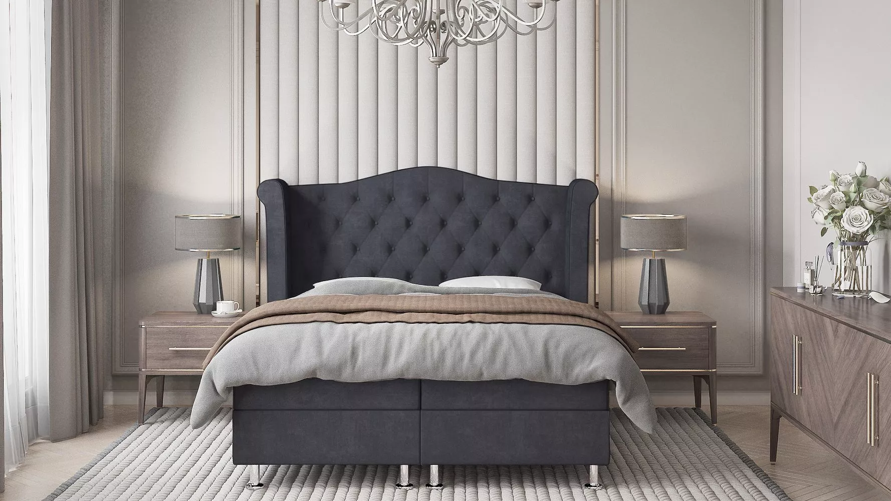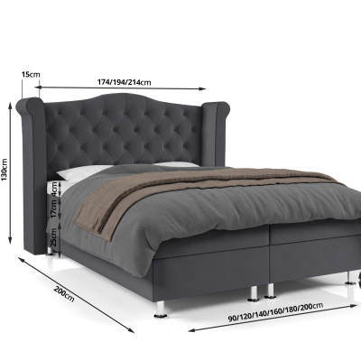 Čalouněná manželská postel 180x200 cm ELSA v klasické stylu je vybavena praktickým úložným prostorem na lůžkoviny, a také vysokým čelem, které jistě oceníte při čtení oblíbené knihy a jako prevenci před znečištěním stěny.