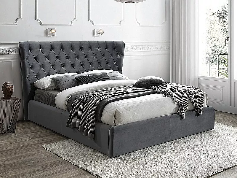 Čalouněná manželská postel MARLENA - 160x200 cm, šedá