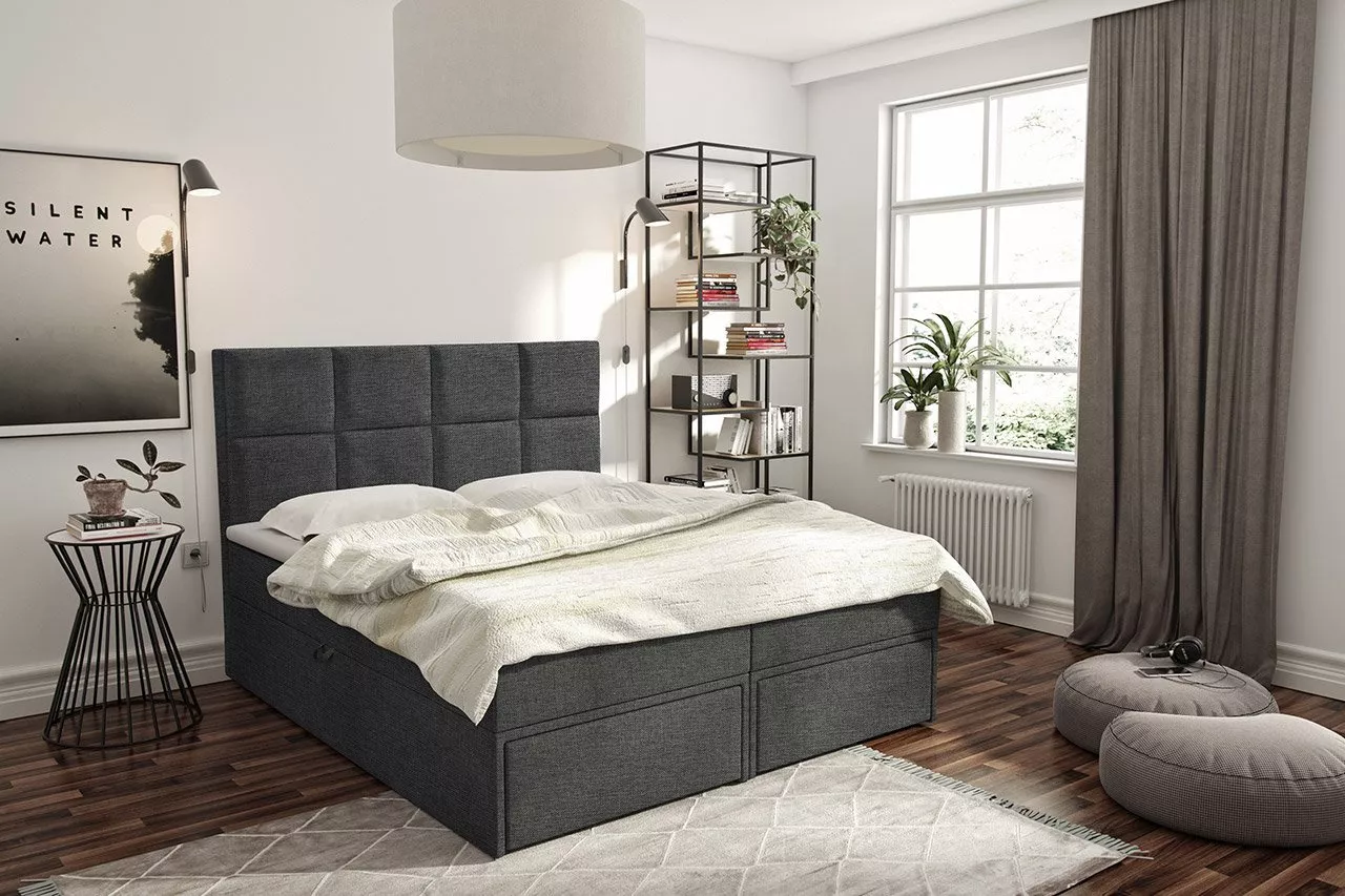 Manželská boxspringová postel 200x200 LUGAU - tmavá šedá + topper ZDARMA