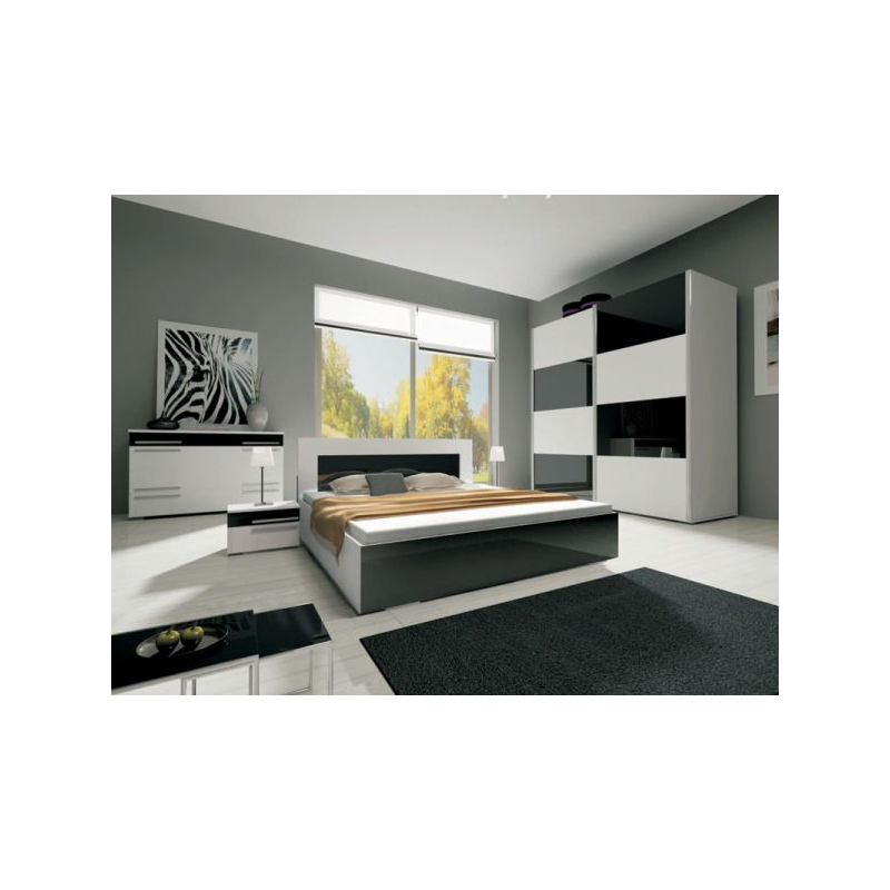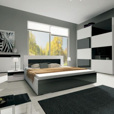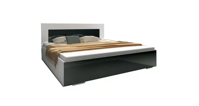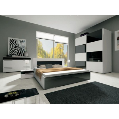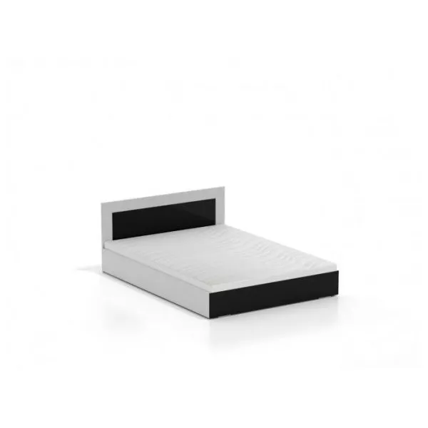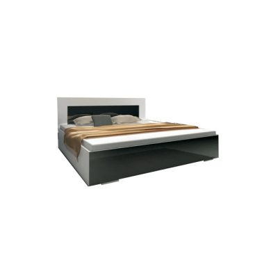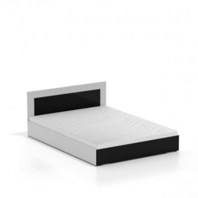Manželská postel s matrací HENRIETA - bílá / černý lesk