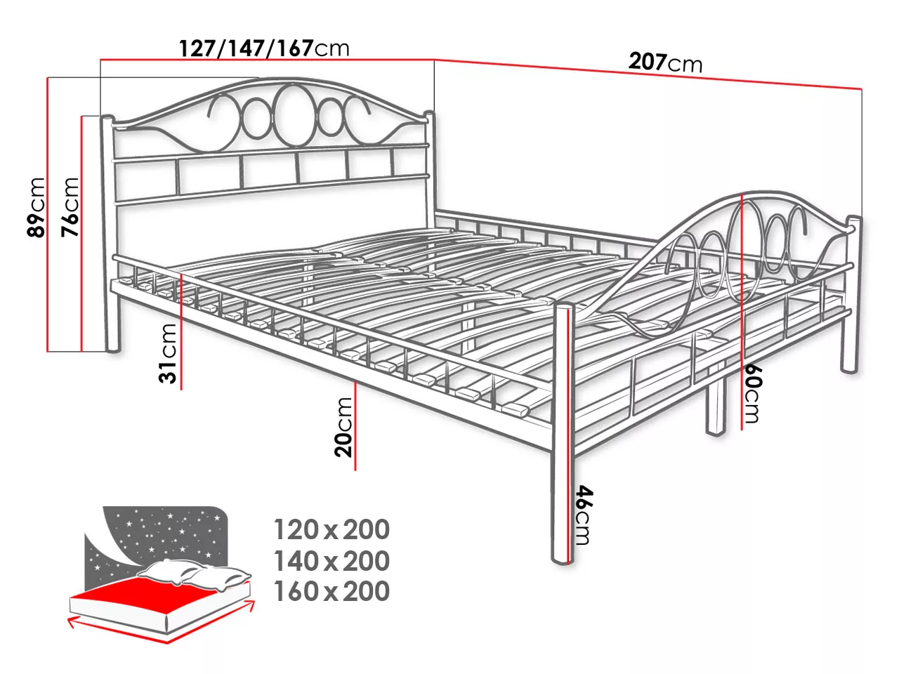 Kovová manželská postel TEJANO o spací ploše 140x200 cm osvěží váš interiér a vnese do ložnice romantickou atmosféru. Kovová konstrukce nabízí kromě stability také dekorativní funkci.