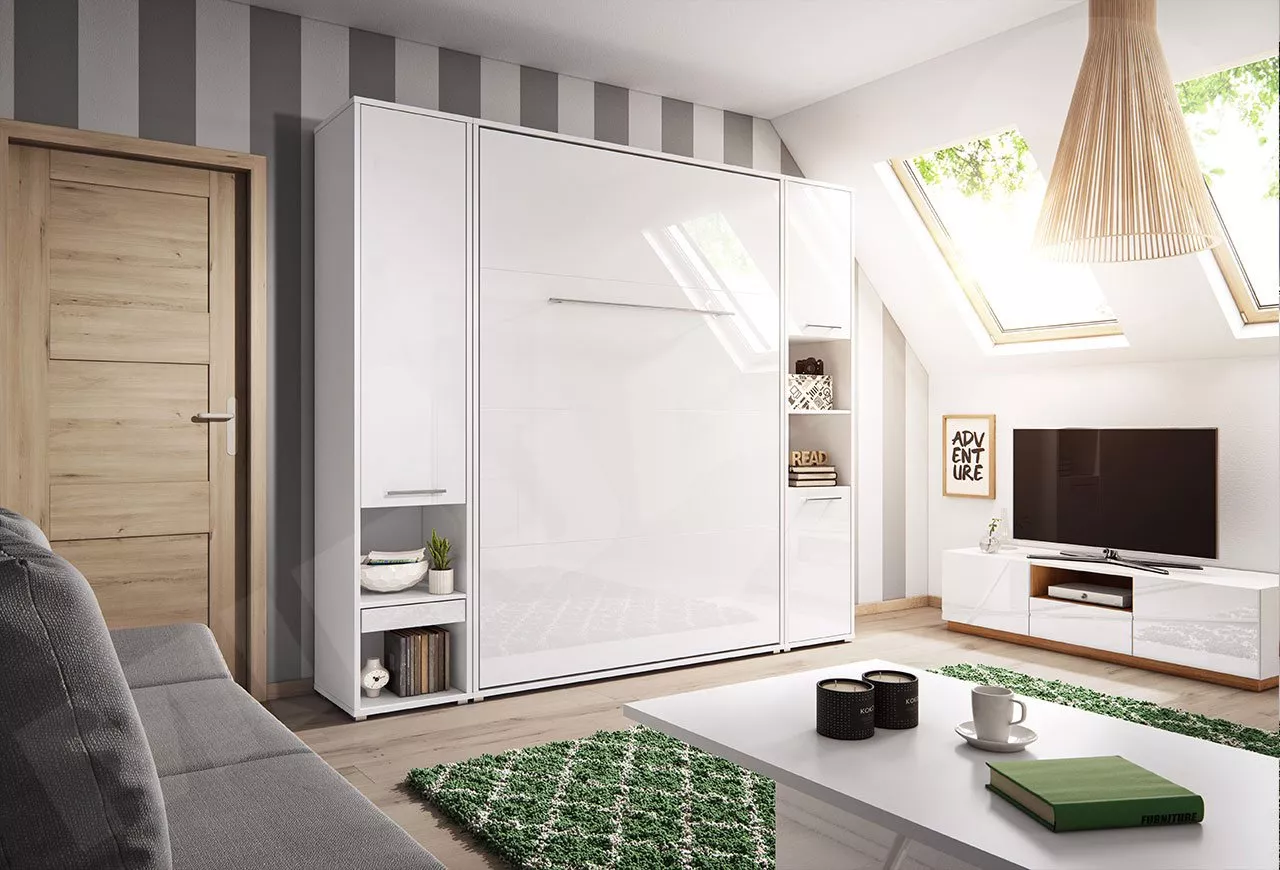 Sklápěcí postel se skříňkami 140x200 CELENA 3 - bílá / lesklá bílá