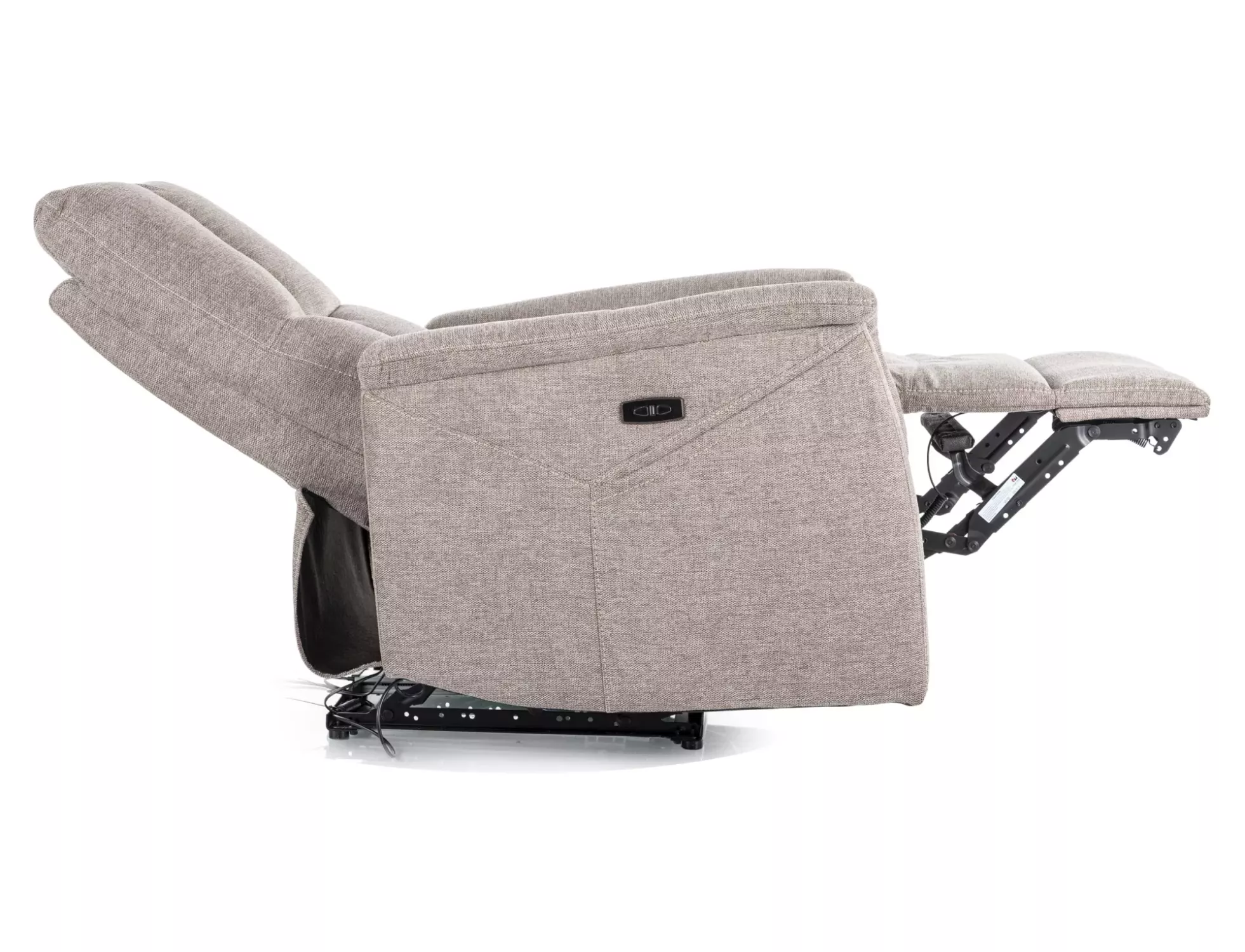 Masážní polohovací křeslo JEAN je rozkládané elektricky. Na boční straně najdete ovládání s portem USB. Funkce masáže je regulovatelná pomocí ovladače, na kterém lze nastavit čas, výběr místa masáže, intenzitu, a vyhřívání v bederní oblasti. Z boku křesla najdete rovněž kapsu, do které můžete umístit ovladač.
