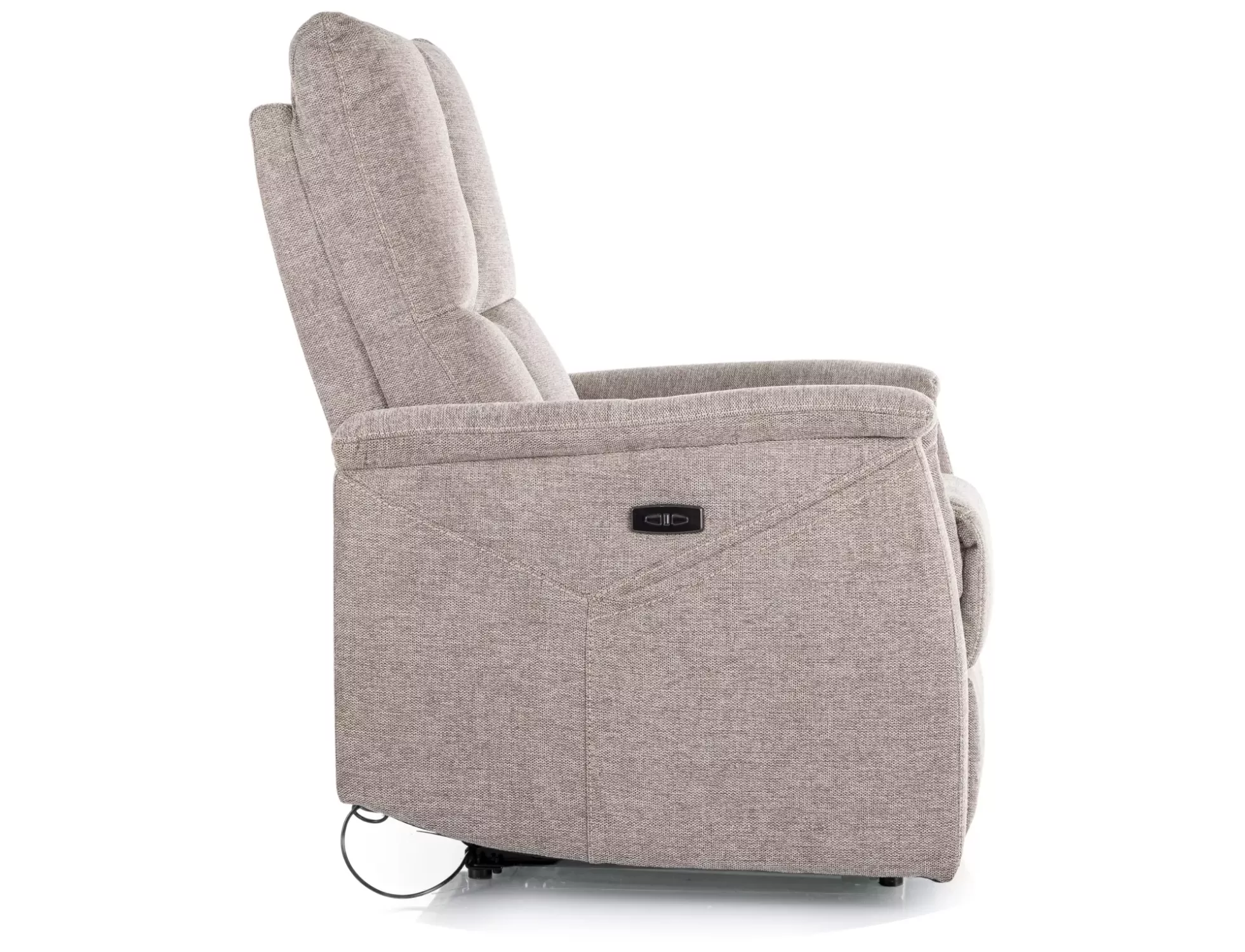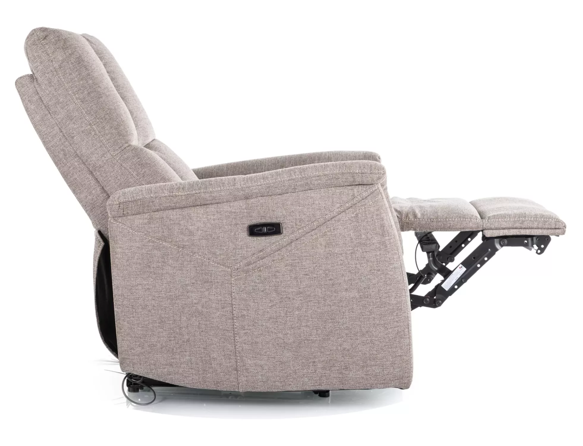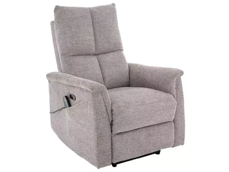 Masážní polohovací křeslo JEAN je rozkládané elektricky. Na boční straně najdete ovládání s portem USB. Funkce masáže je regulovatelná pomocí ovladače, na kterém lze nastavit čas, výběr místa masáže, intenzitu, a vyhřívání v bederní oblasti. Z boku křesla najdete rovněž kapsu, do které můžete umístit ovladač.
