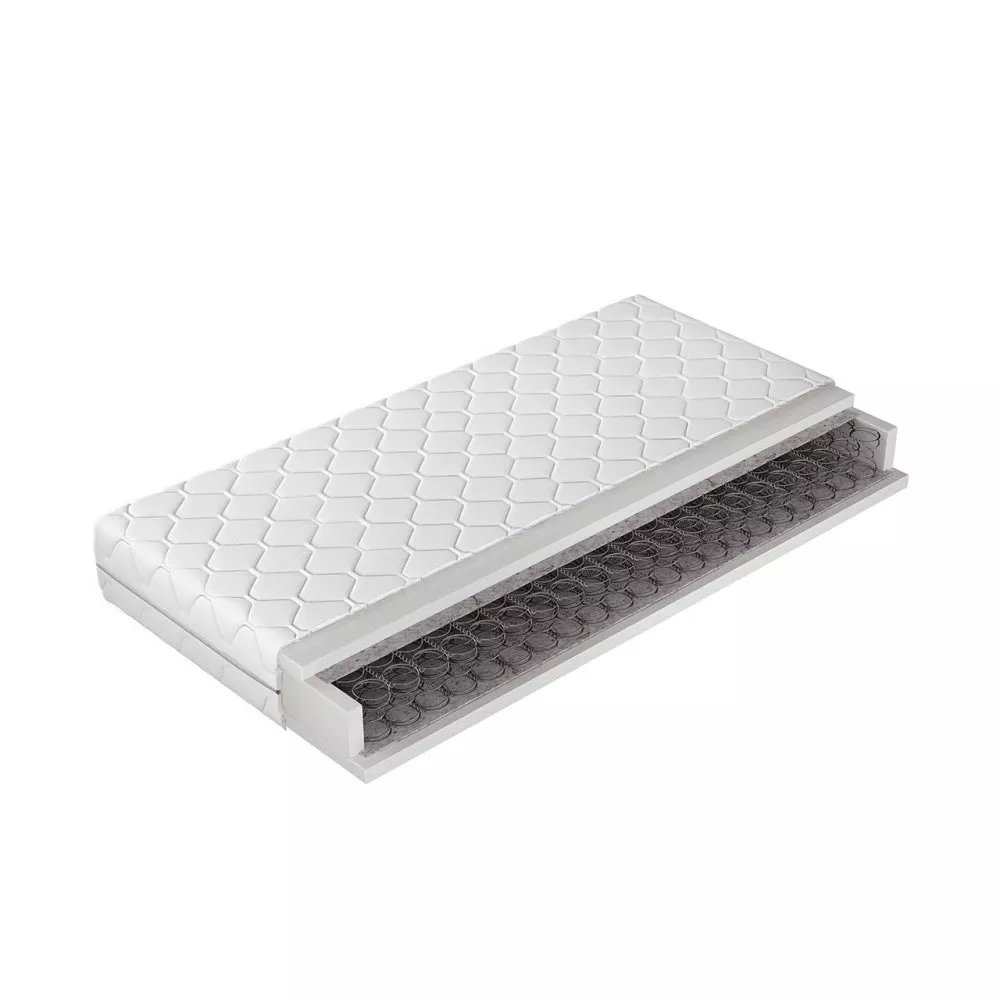 Vnitřek oboustranné matrace TROFA 1 je vyplněn speciální pěnou a bonellovými pružinami, které poskytují správné podmínky pro kvalitní spánek a zvyšují životnost matrace. Další předností matrace je klimatizační netkaná textilie, díky které matrace získává protiplísňové a antialergické vlastnosti a pratelný potah na zip.