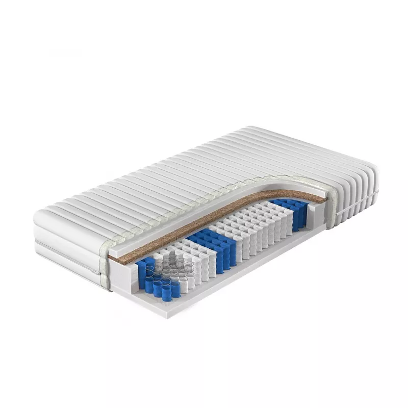- vložka z kapesních pružin - 7 zón, má mnoho opěrných bodů, které umožňují zachovat přirozené křivky těla během spánku a každou pružinu uvnitř produktu umístěnou v samostatné kapse, díky které funguje nezávisle na ostatních