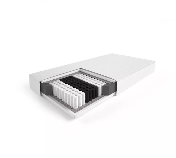 Taštičková matrace 160x200 MURPHY je v jádru tvořená taštičkovými pružinami uspořádanými do 7 zón tvrdosti pro dokonalou oporu páteře. Jádro je obklopeno PUR pěnou T25, která je odolná vůči deformaci, pružná a trvanlivá.