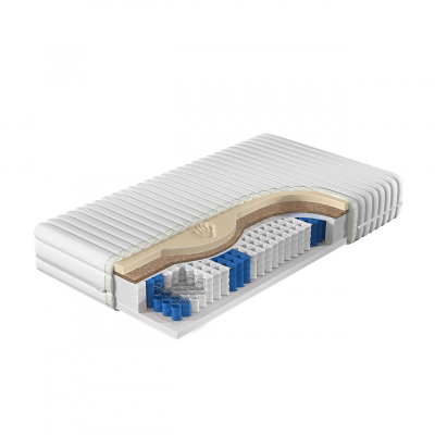 - vložka z kapesních pružin - 7 zón, má mnoho opěrných bodů, které umožňují zachovat přirozené křivky těla během spánku a každou pružinu uvnitř produktu umístěnou v samostatném kapse, díky které funguje nezávisle na ostatních