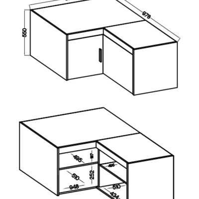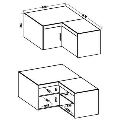 Rohová nástavba na skříň PILINA se hodí na rohovou skříň 98 PILINA s policemi. Součástí nástavby jsou 2 police.