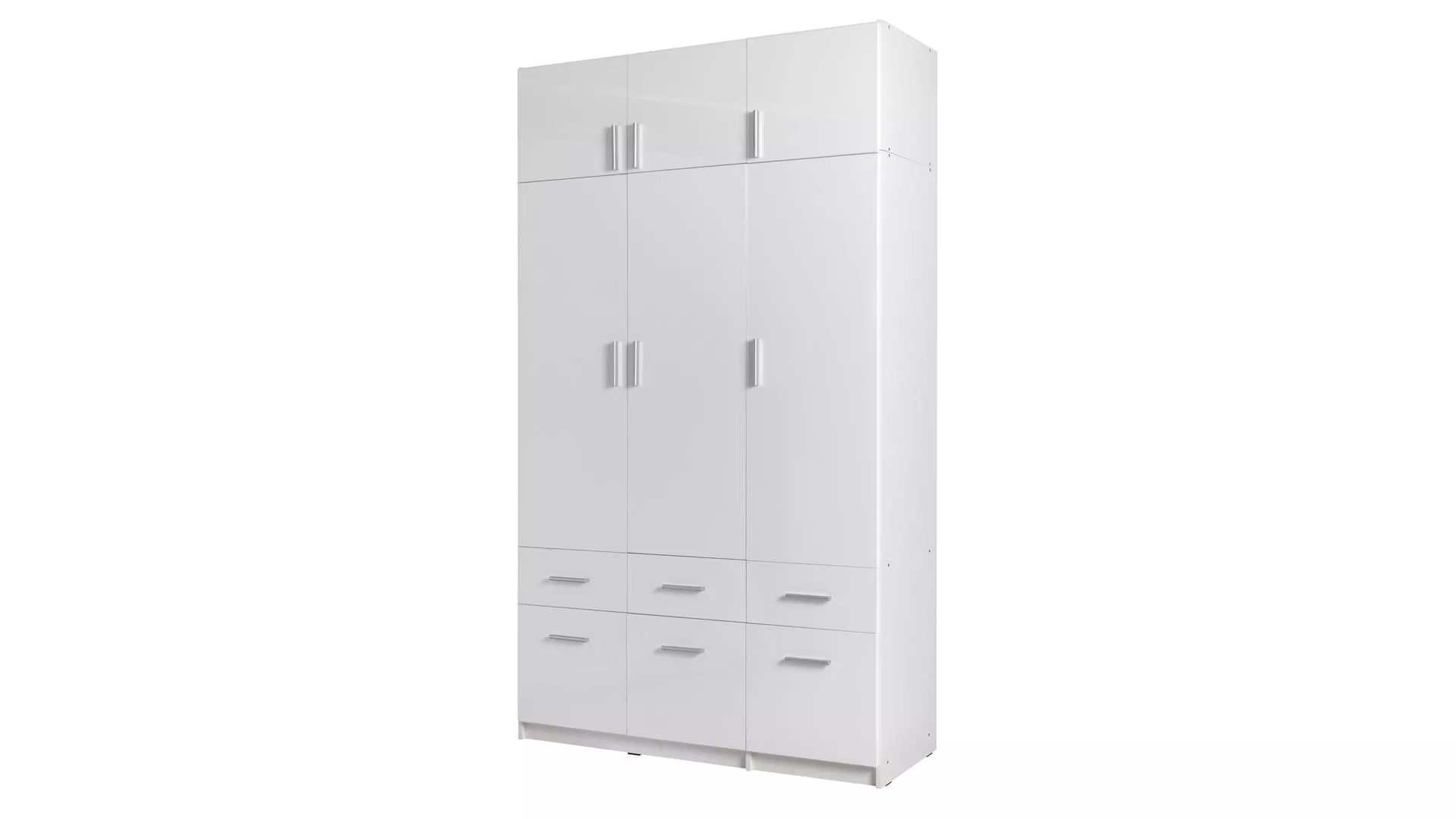 Nástavba na širokou šatní skříň 136 cm FUNZA 4 - alpská bílá / lesklá bílá