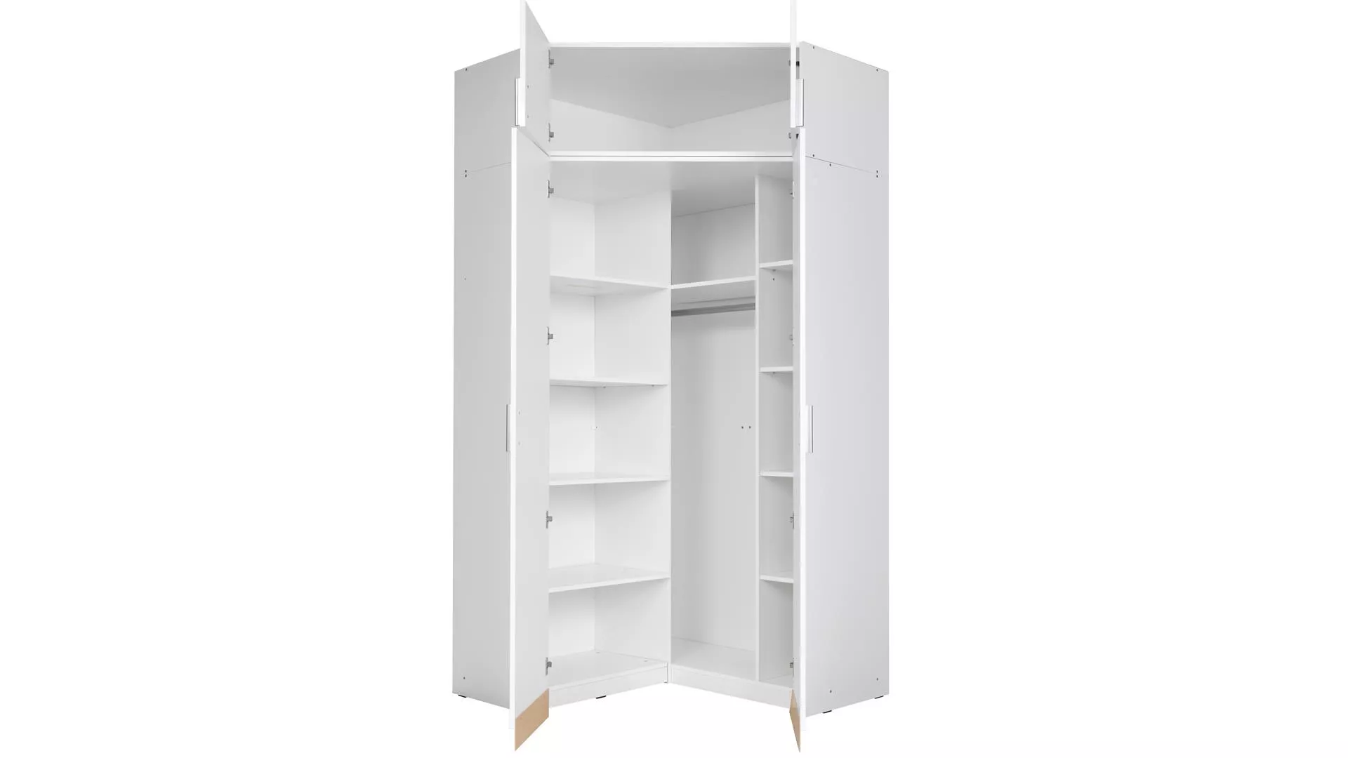 Nástavba na rohovou šatní skříň 117 cm FUNZA 5 - alpská bílá / lesklá bílá
