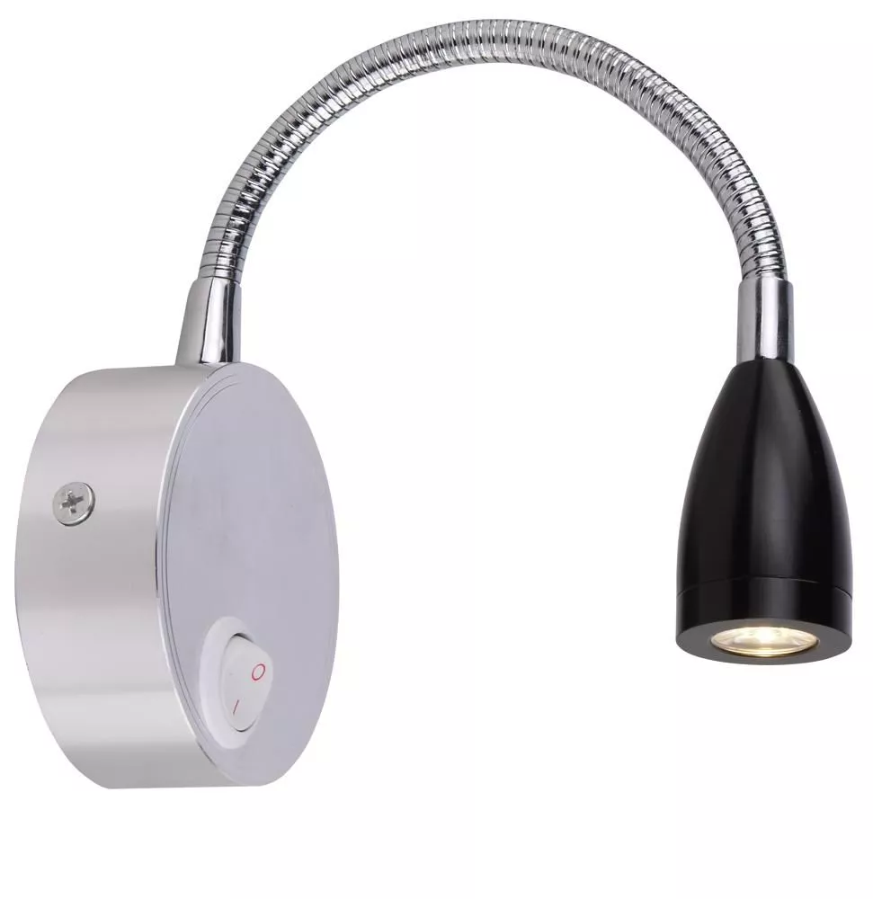 Nástěnná LED lampa k posteli DINO, 3W, 3000K (teplá bílá), černá / chromovaná