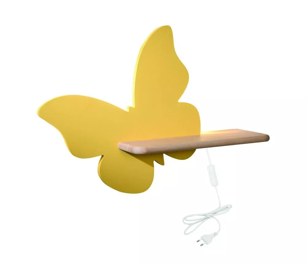 Vytvořte v dětském pokoji pohádkovou atmosféru s lampičkou BUTTERFLY, jejíž hravý, žlutý design ve tvaru motýla okamžitě oživí interiér. Žlutá konstrukce je chytře doplněna o praktickou poličku, která slouží k odkládání knih nebo hraček. Díky denní bílému světlu o teplotě 4000 K je ideální k posteli pro čtení nebo hry a protože se zapojuje do zásuvky, lze ji umístit kamkoliv. Krytí IP20 značí vhodnost použití v interiéru.