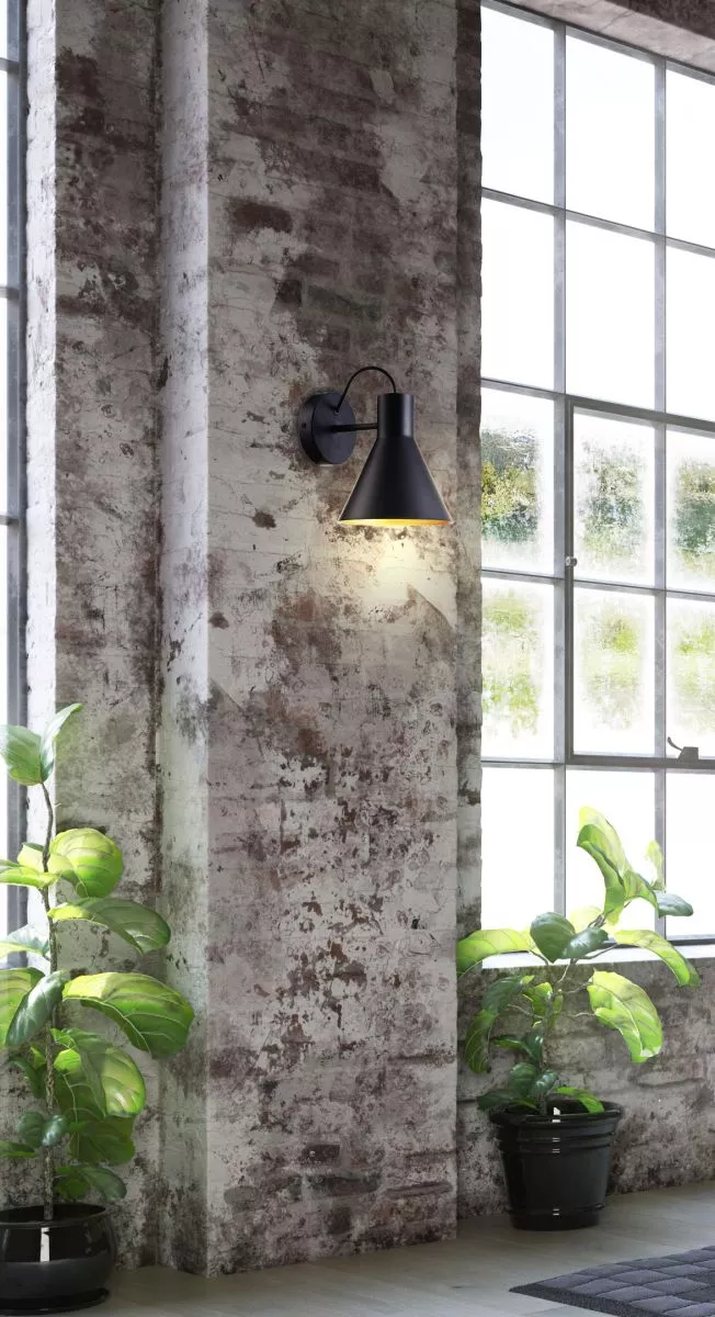 Nástěnné svítidlo MORE zaujme matnou černou konstrukcí doplněnou zlatým vnitřkem, který při rozsvícení vytváří hřejivý odlesk. Svítidlo se skvěle hodí do moderních i industriálně laděných interiérů, kde vynikne jako elegantní doplněk nad nočním stolkem, vedle pohovky nebo v předsíni. Světlo je osazeno paticí E27 pro žárovku o maximálním příkonu 40 W, která není dodávána v balení. Pro úsporu elektrické energie doporučujeme osadit úspornou LED žárovkou. Krytí IP20 značí vhodnost použití v interiéru.