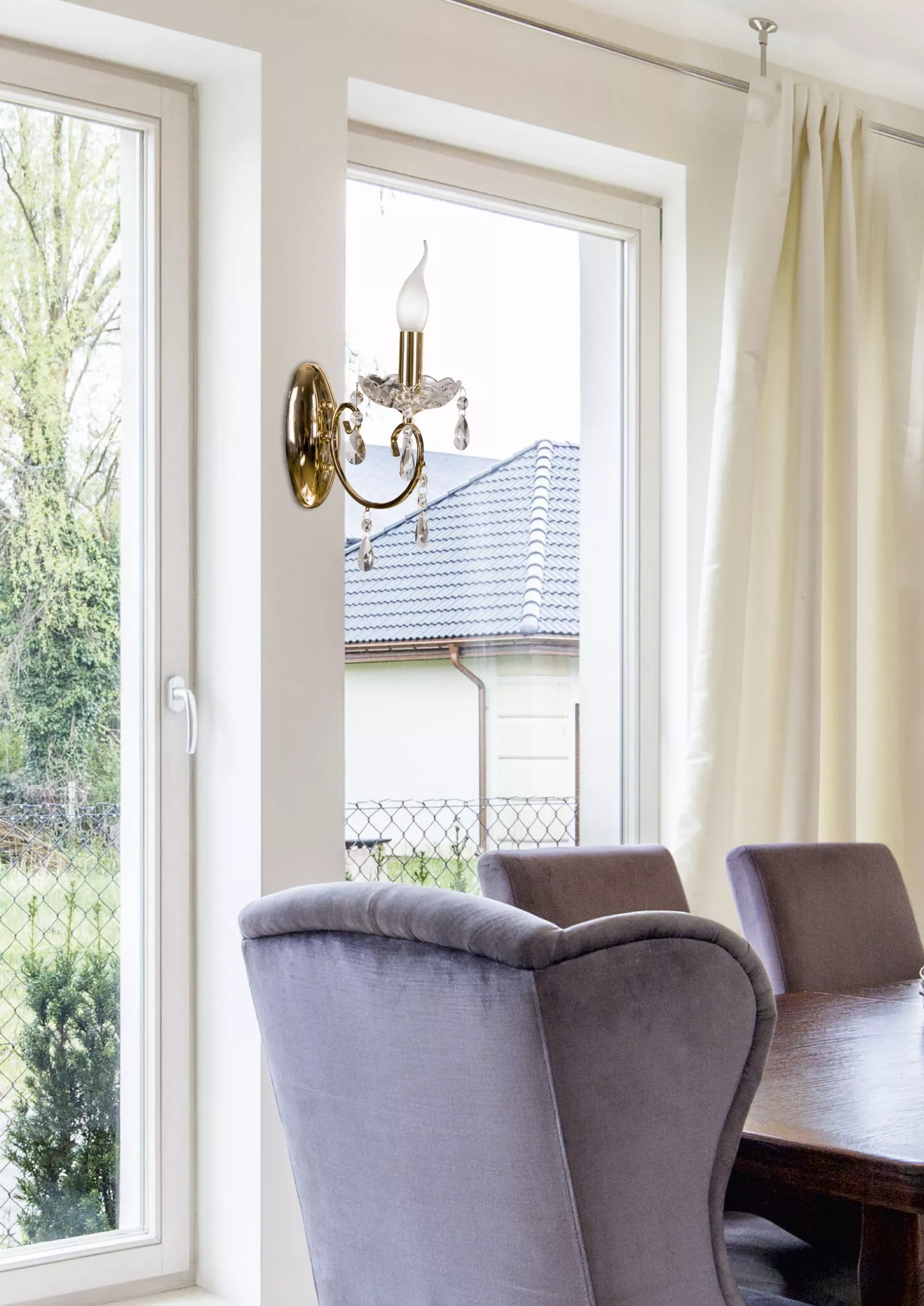 Vytvořte v místnosti luxusní atmosféru s nástěnným osvětlením AURORA, jehož klasický design s křišťálovým zdobením navodí pocit vznešenosti. Zlatá kovová konstrukce je bohatě zdobená lesklými skleněnými křišťály, které zaručují nádhernou hru světla. Toto nástěnné svítidlo je ideální pro doplnění hlavního lustru v obývacím pokoji nebo pro reprezentativní osvětlení haly v klasicky zařízených interiérech. Určeno pro žárovku s paticí E14 a maximálním výkonem 40 W. Pro úsporu el. energie doporučujeme osadit úspornou LED žárovkou. Krytí IP20 značí vhodnost použití v interiéru.