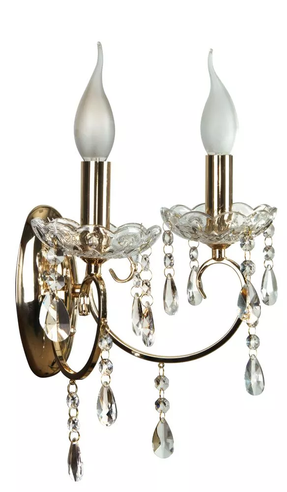Vytvořte v místnosti luxusní atmosféru s dvojramenným nástěnným osvětlením AURORA, jehož klasický design s křišťálovým zdobením navodí pocit vznešenosti. Zlatá kovová konstrukce se vyznačuje hranatým profilem ramen a je bohatě zdobená lesklými skleněnými křišťály, které zaručují nádhernou hru světla. Toto nástěnné svítidlo je ideální pro doplnění hlavního lustru v obývacím pokoji nebo pro reprezentativní osvětlení haly v klasicky zařízených interiérech. Určeno pro 2 žárovky s paticí E14 a maximálním výkonem 40 W. Pro úsporu el. energie doporučujeme osadit úspornou LED žárovkou. Krytí IP20 značí vhodnost použití v interiéru.