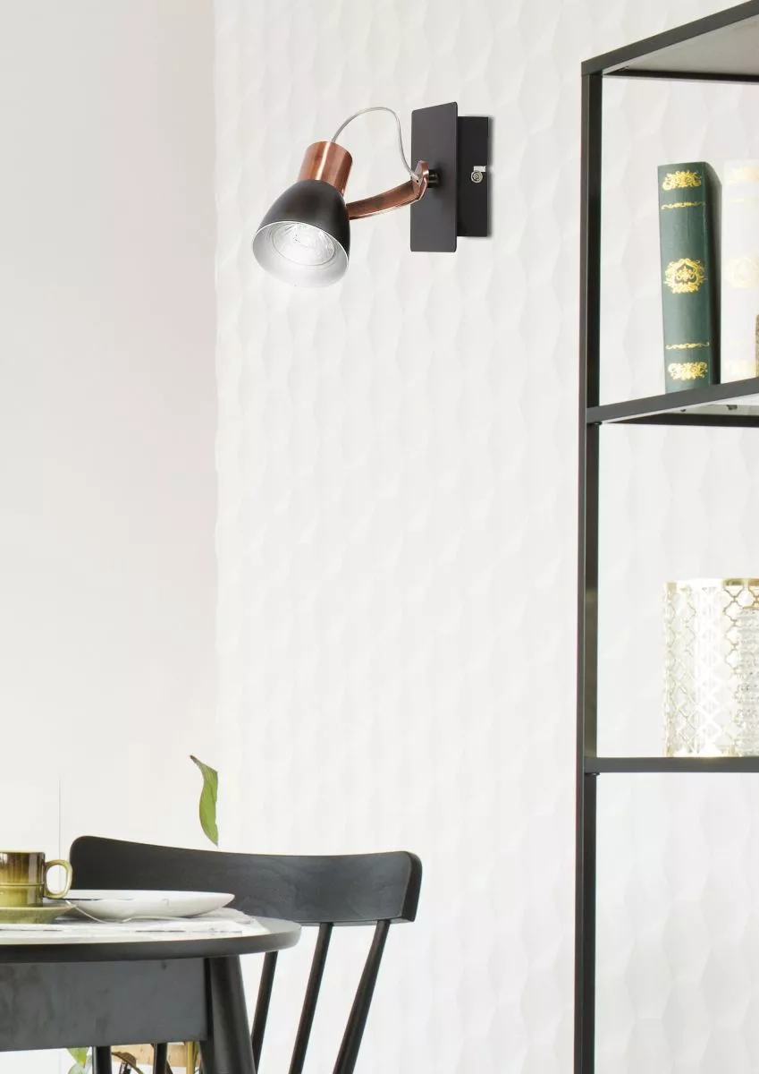 Proměňte svůj interiér nástěnným bodovým svítidlem MARKUS! Konstrukce v elegantní matné černé barvě doplněná jemnými měděnými akcenty přináší sofistikovaný, moderní vzhled s nádechem luxusu. Skvěle doplní obývací pokoj, ložnici i pracovnu, kde můžete nasměrovat světlo přesně tam, kam potřebujete. Určeno pro žárovku s paticí GU10 a maximálním výkonem 50 W. Pro úsporu el. energie doporučujeme osadit úspornou LED žárovkou. Krytí IP20 značí vhodnost použití v interiéru.