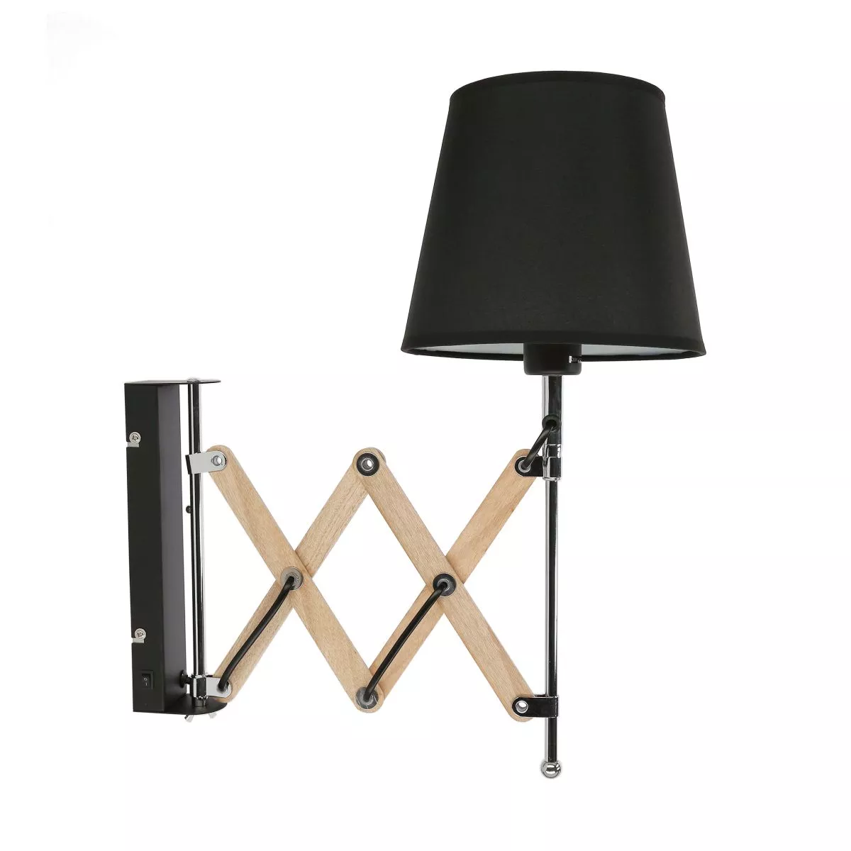 Dodejte svému interiéru moderní eleganci s nástěnnou lampou MITO! Chromovaná konstrukce s černým látkovým stínidlem působí čistě a nadčasově. Flexibilní dřevěné rameno vám umožní nasměrovat světlo tak, jak potřebujete – ideální k posteli, do pracovny i do hotelového pokoje pro pohodlné večerní čtení. Určeno pro žárovku s paticí E27 a maximálním výkonem 40 W. Pro úsporu el. energie doporučujeme osadit úspornou LED žárovkou. Krytí IP20 značí vhodnost použití v interiéru.