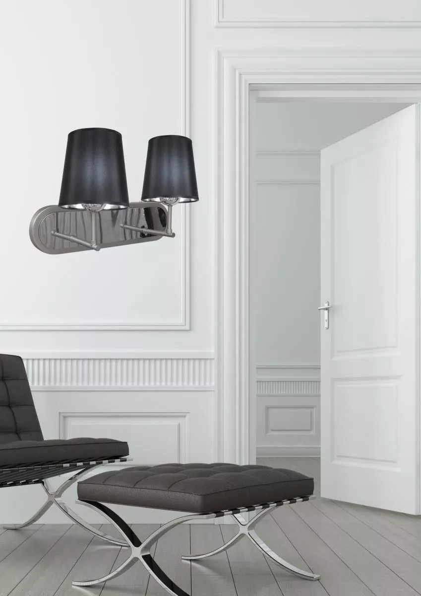 Vytvořte si doma výrazný dekorativní prvek s nástěnnou lampou MILONGA! Dvoubarevné stínidlo v kombinaci stříbrné a černé dodává interiéru osobitý charakter. Díky 2 symetricky umístěným ramenům působí lampa vyváženě a skvěle se hodí do obývacího pokoje, ložnice nebo hotelového pokoje jako doplňkové světlo. Určeno pro 2 žárovky s paticí E27 a maximálním výkonem 60 W. Pro úsporu el. energie doporučujeme osadit úspornou LED žárovkou. Krytí IP20 značí vhodnost použití v interiéru.