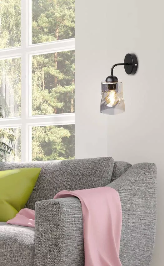Moderní nástěnné osvětlení FELIS - 1xE27, 60W, černé / kouřové sklo