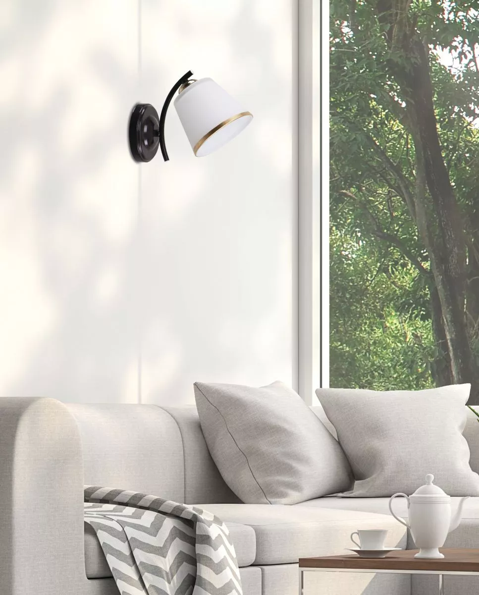 Zkrášlete svůj interiér nástěnnou lampou GRECO, kde černá kovová konstrukce se zlatým akcentem krásně ladí s bílým skleněným stínidlem a působí elegantně a moderně. Využijete ji v obývacím pokoji, ložnici i na chodbě jako příjemné doplňkové světlo, které dodá prostoru harmonii. Určeno pro žárovku s paticí E27 a maximálním výkonem 40 W. Pro úsporu el. energie doporučujeme osadit úspornou LED žárovkou. Krytí IP20 značí vhodnost použití v interiéru.