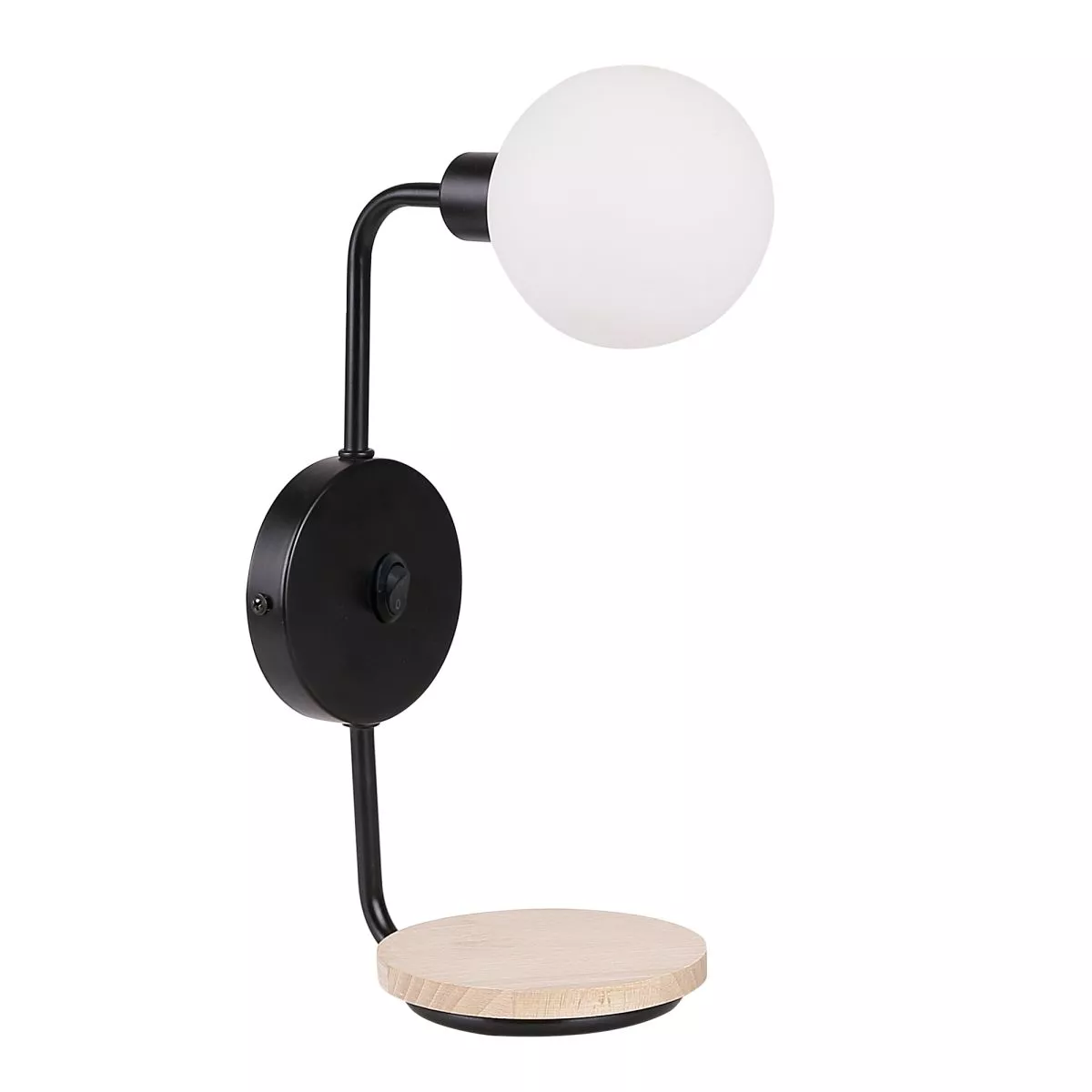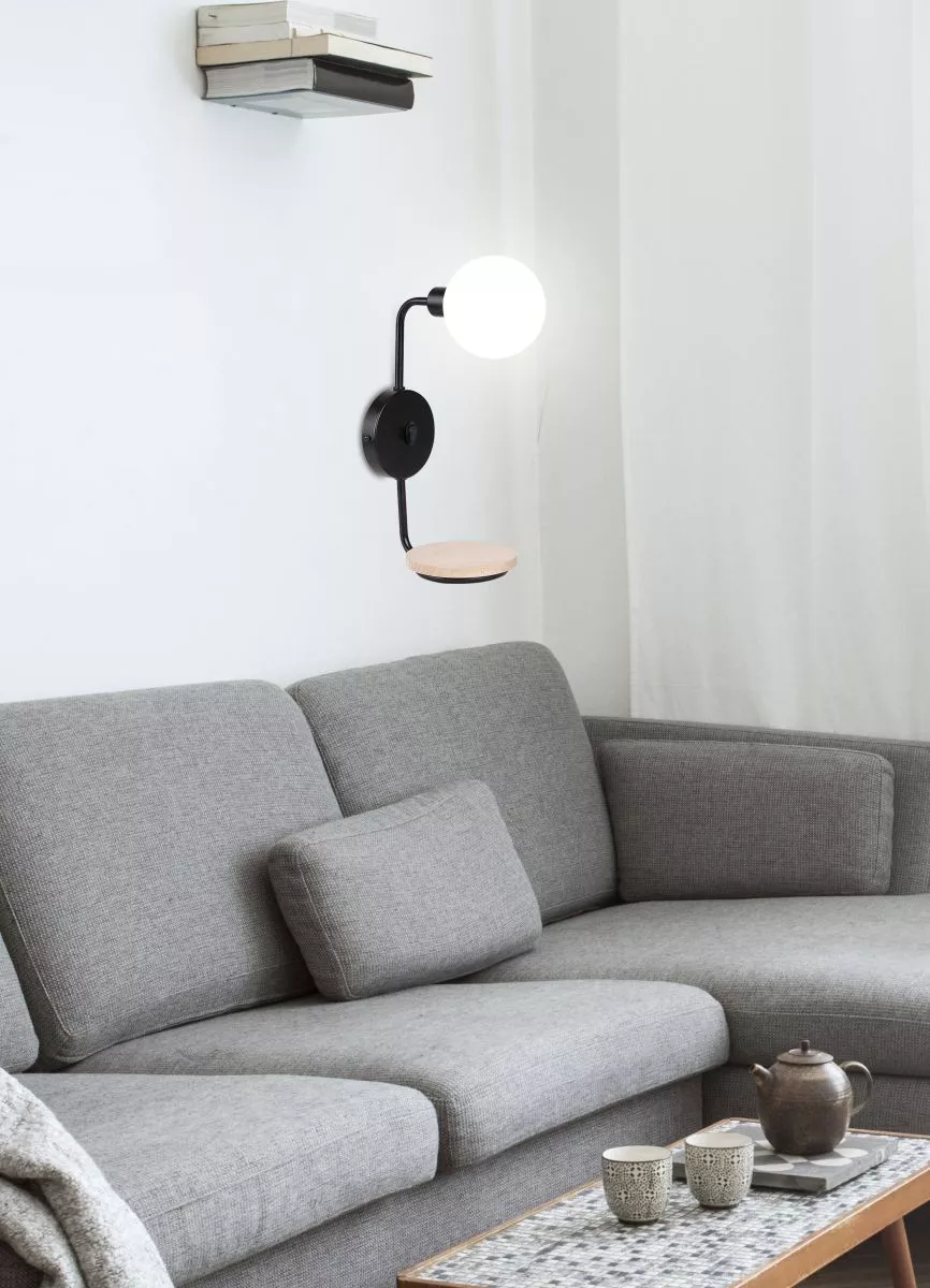 Oživte svůj prostor s nástěnnou lampou s poličkou PONIO! Černá kovová konstrukce doplněná bílým skleněným stínidlem vytváří moderní a vyvážený vzhled, který působí čistě a elegantně. Praktická dřevěná polička činí z lampy ideální řešení do ložnice, chodby či obývacího pokoje, kde nabídne jak světlo, tak odkládací místo na drobnosti. Určeno pro žárovku s paticí G9 a maximálním výkonem 25 W. Pro úsporu el. energie doporučujeme osadit úspornou LED žárovkou. Krytí IP20 značí vhodnost použití v interiéru.