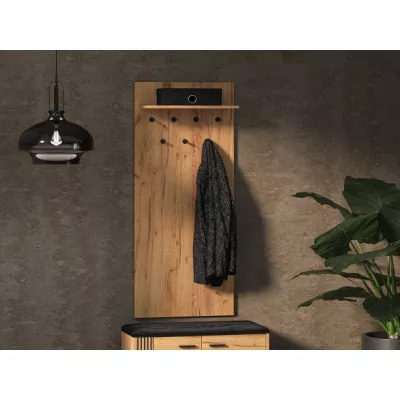 Věšák s poličkou FAZA nabízí celkově 7 háčků k zavěšení. Pro uložení drobných věcí pak poslouží horní police.