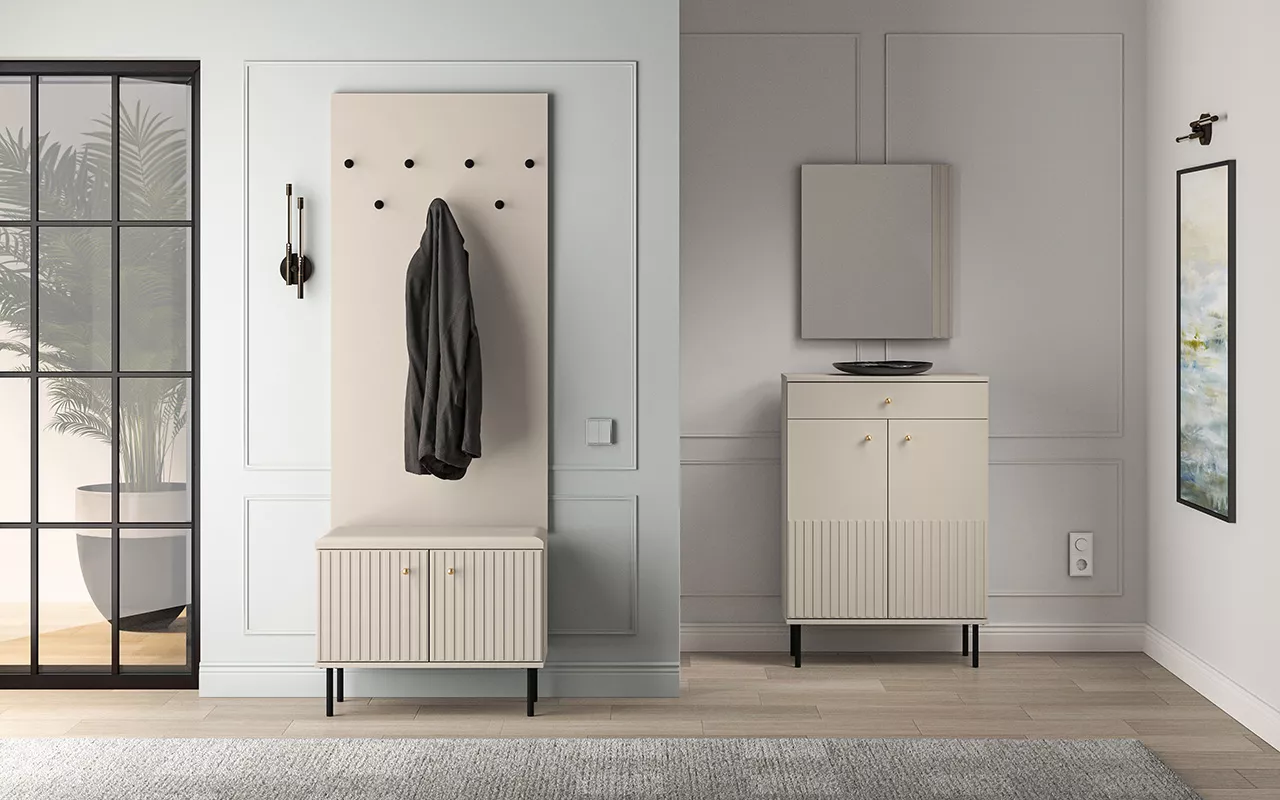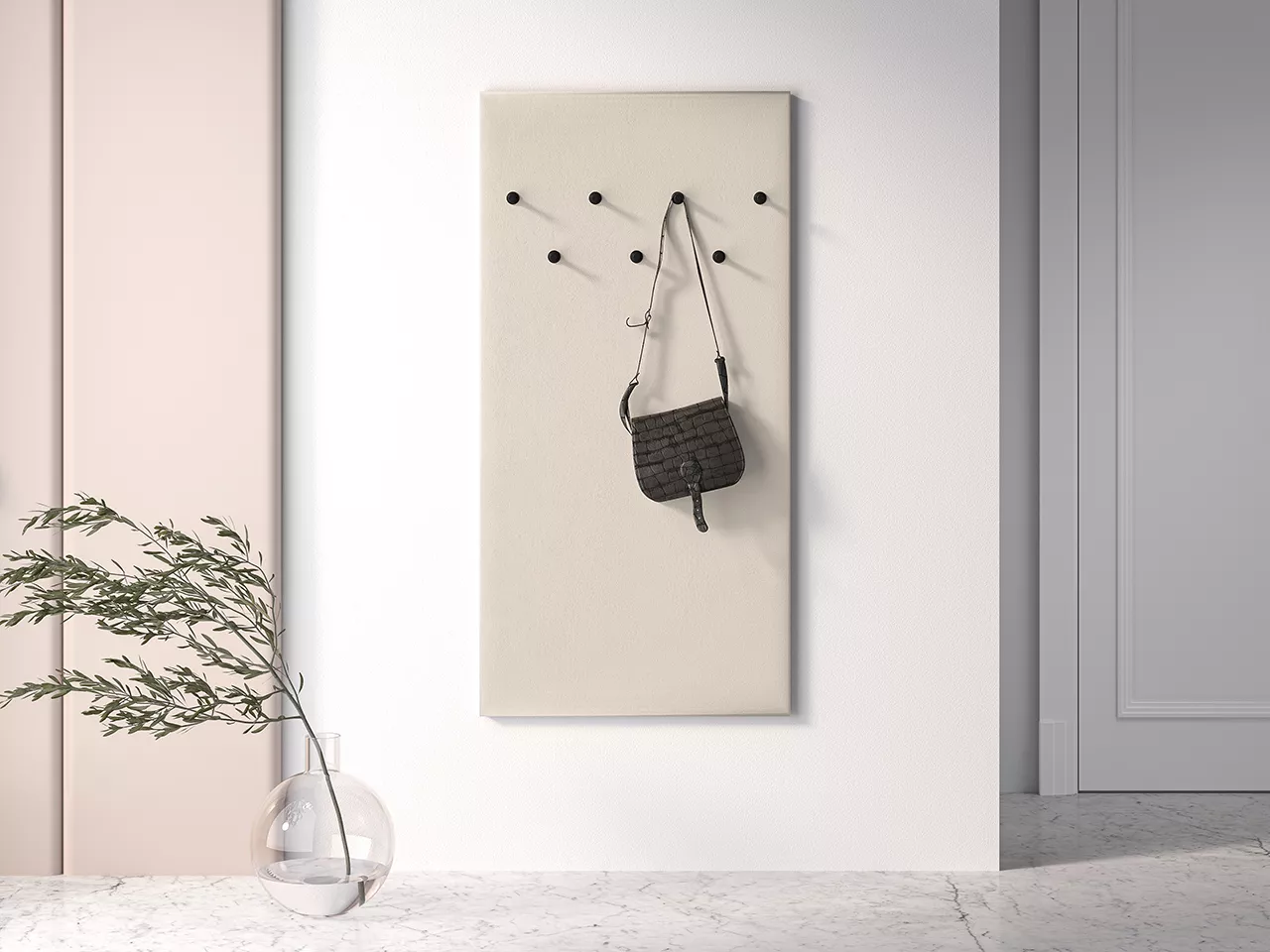 Čalouněný nástěnný věšák FAREL se stane nezbytným doplňkem každé předsíně. Skládá se ze 7 háčků.