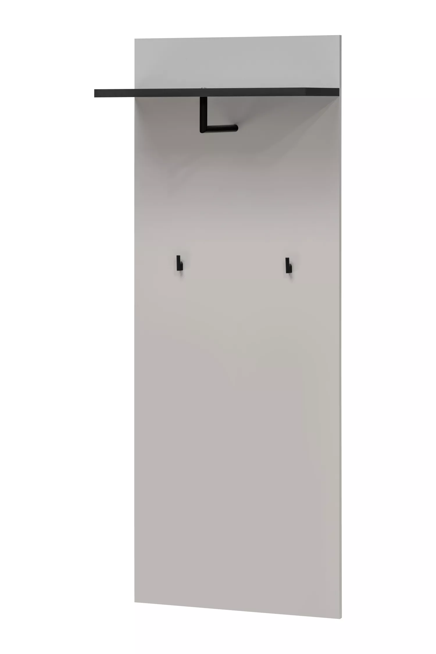 Nástěnný věšák PETUNIA kombinuje pohodlí a funkčnost. Nabízí 2 háčky a malou tyč k zavěšení oděvů. Pro odložení drobných věcí slouží horní police.