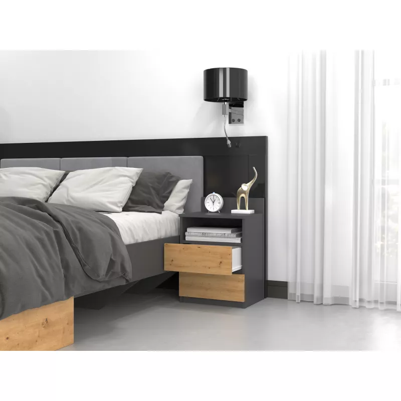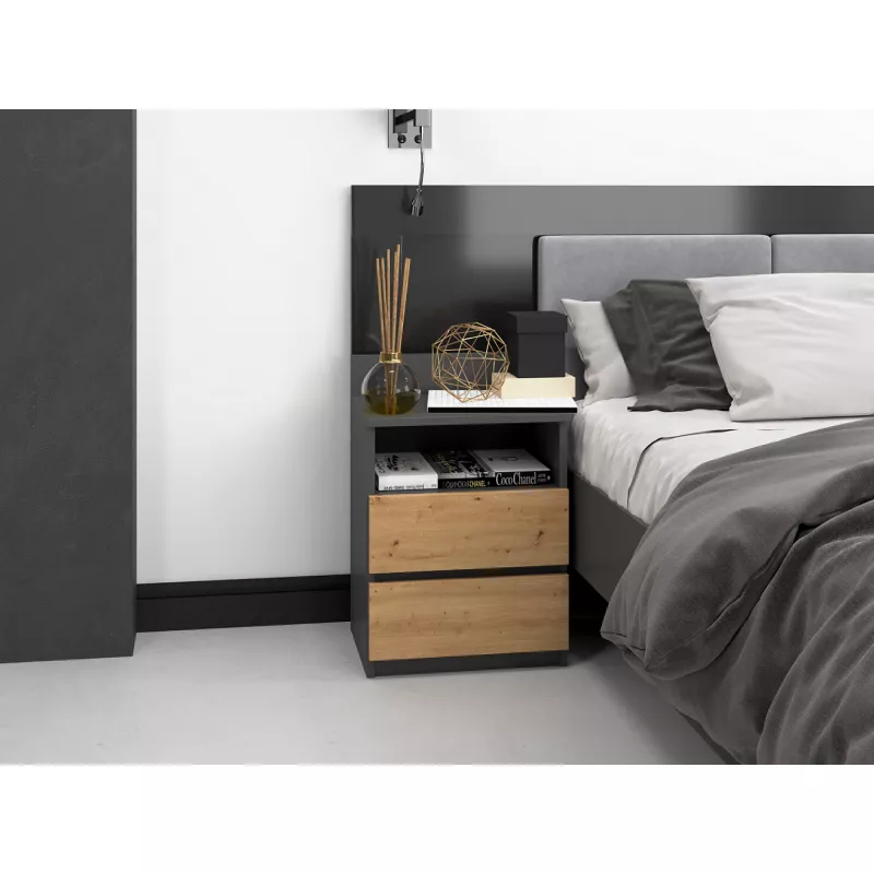 Noční stolek se zásuvkami a poličkou TAAVI - dub artisan / antracitový